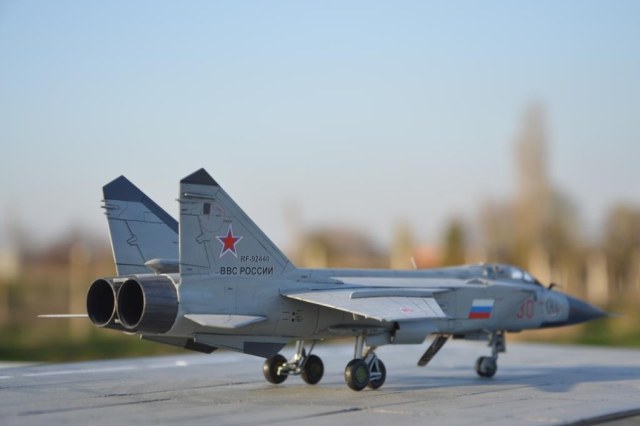 Приветствую Вас коллеги по цеху. Вот вышла моя очередная работа прекраснейшего самолета МиГ-31. В даваться не стану в набор, по скольку все его знают. По мне так сборка на 4. Проблемы возникли при установке шасси. Вставали криво, не красиво. Но терпение и труд - все перетрут.