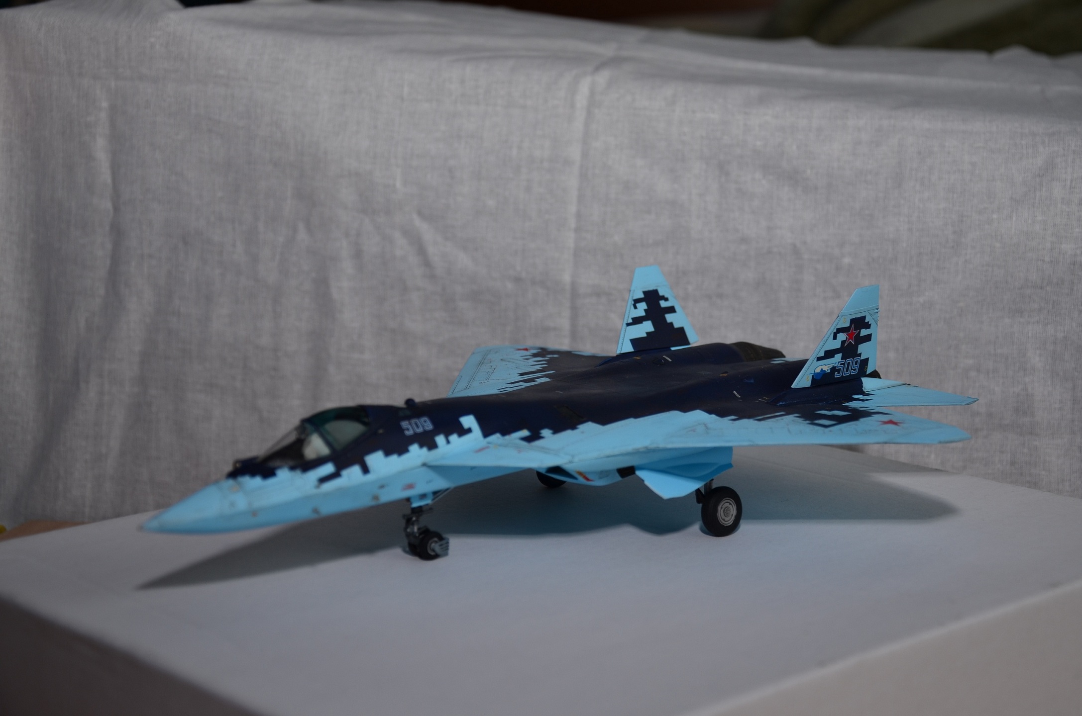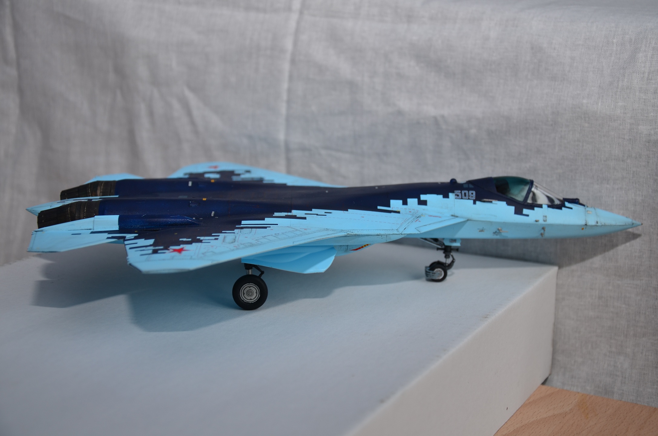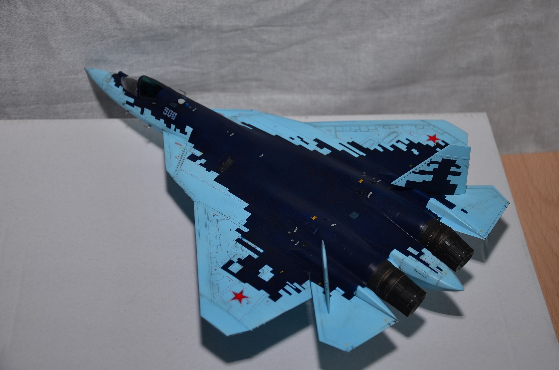 Доброго времени суток! Моя первая модель на сайте. На момент покупки именовался ПАК ФА, к моменту завершения сборки уже получил индекс Су-57 :).