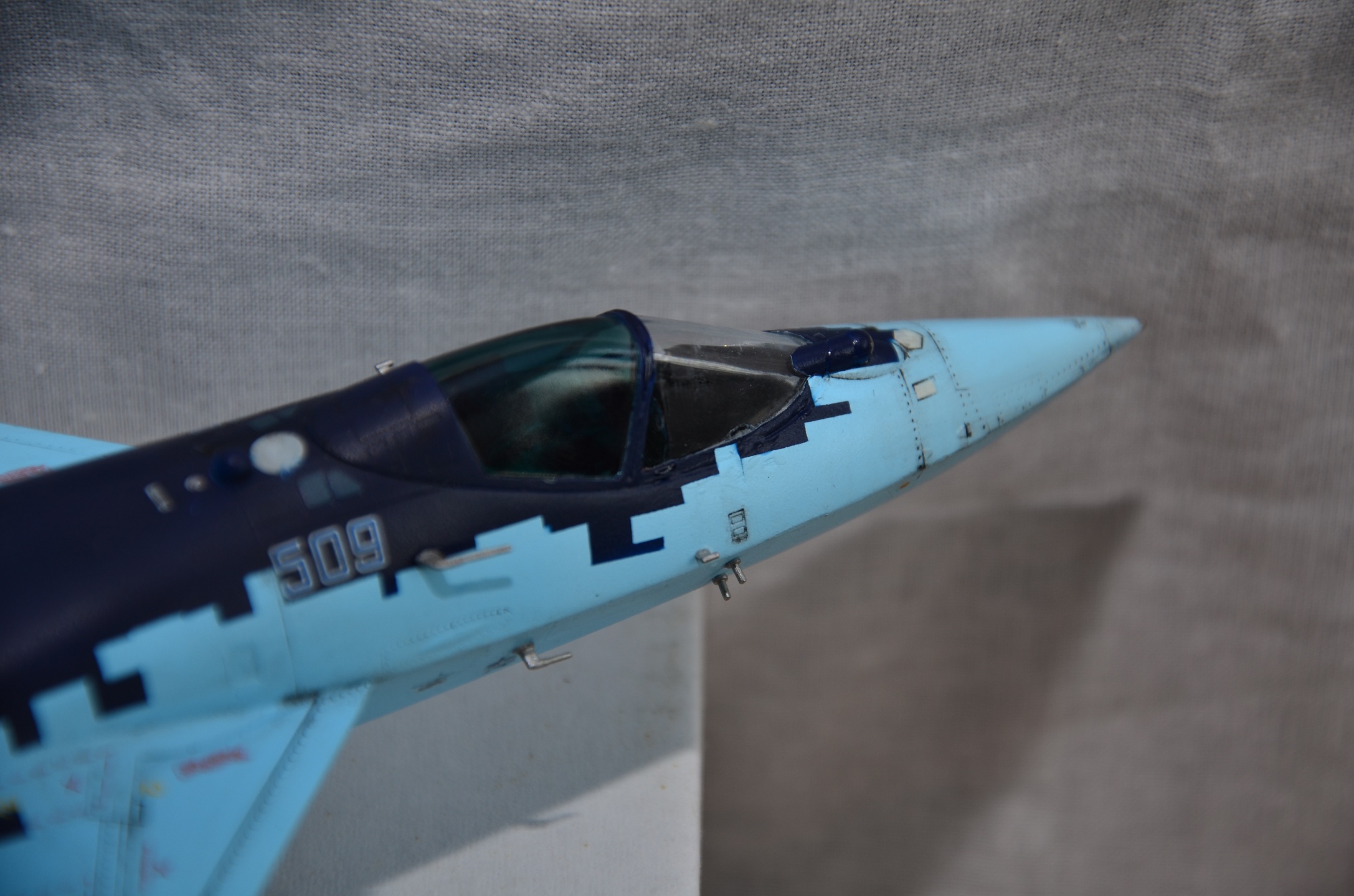 - Камуфляж «один-в-один» не получилось имитировать. Особенно разнится на левом крыле и ближе к носу.