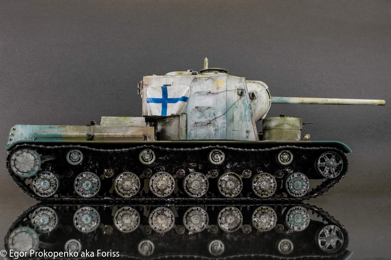 Работа понравилась, но сама идея пленения нет. Танк существовал только в макете, в Советском Союзе не было на тот момент двигателя, таскать это железо, да и не думаю что бы финны выкрали макет из Ленинграда и притащили его к себе.