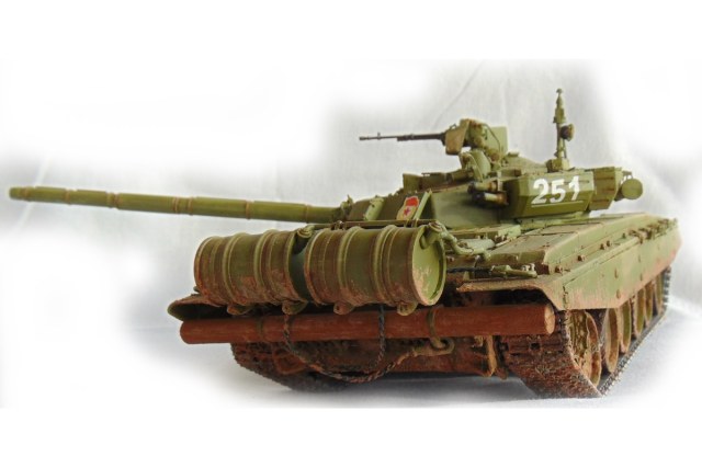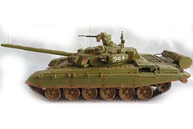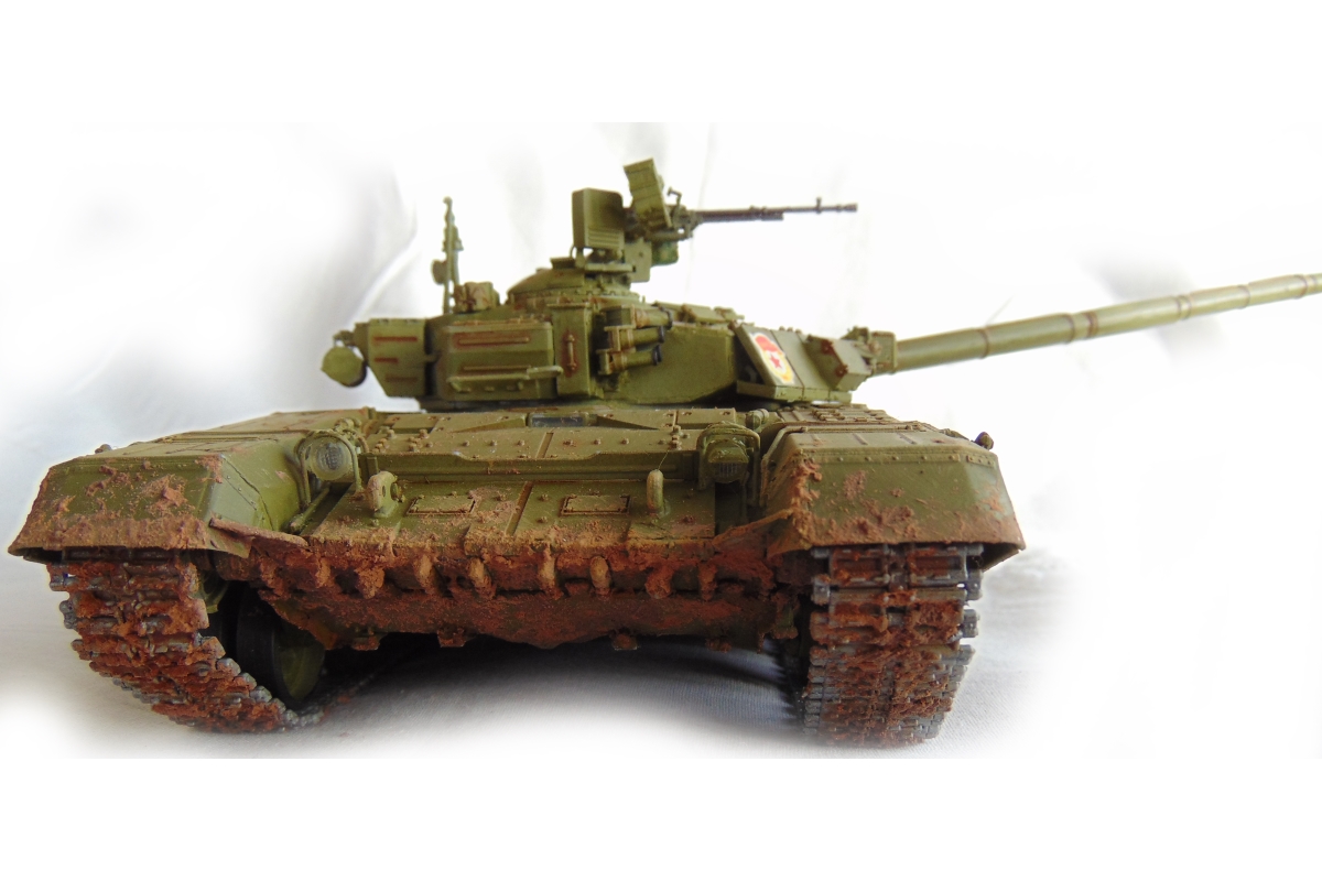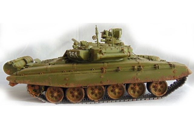 Модель задута из аэрографа разбавленной валехой, смыта маслом на уайт-спирите, обработана сухой кистью и подвергнута нещадному грязингу в надежде скрыть следы двукратной поклейки с промежуточной разборкой. Но углядев на фотографии девственно чистый каток, выглядывающий из под НБЛ, я понял, что номер не удался..