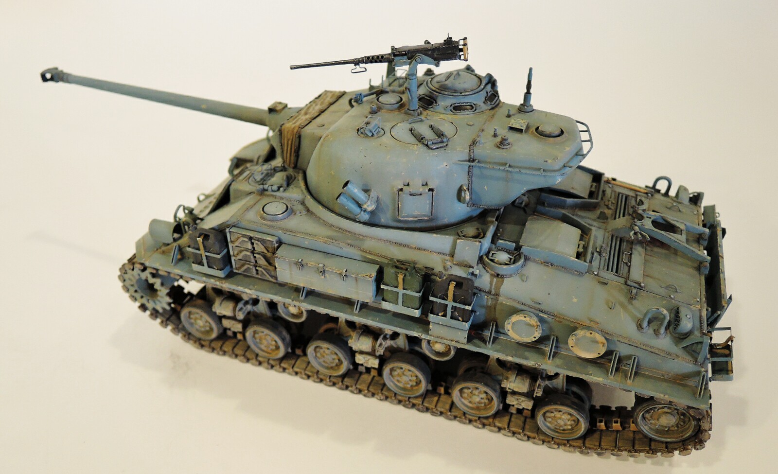 Интересный Шерман, окраска прям как с фото. Ему корпус удлиняли?