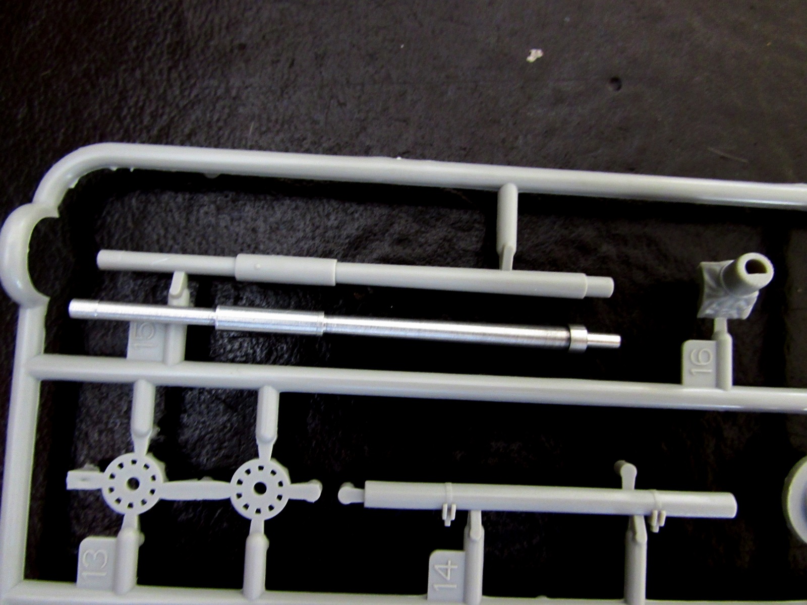 4. Ствол - терпимо, но все же не ахти - есть облой, а самое главное, ствол короче, чем надо. Но в данном случае я предпочел бы поставить ствол от Dymok72 - положил рядом для сравнения.