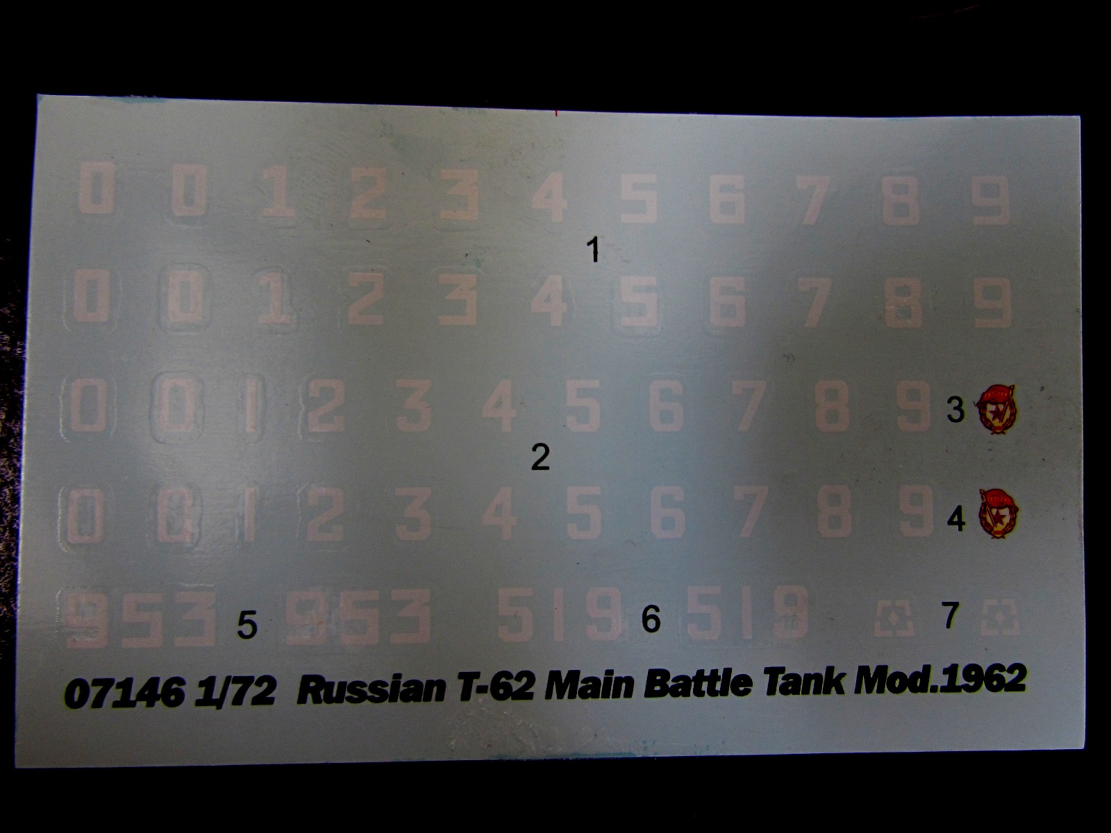 Декаль простая, номера и тактические обозначения. Как всегда, фирма слажала с гвардейским значком.