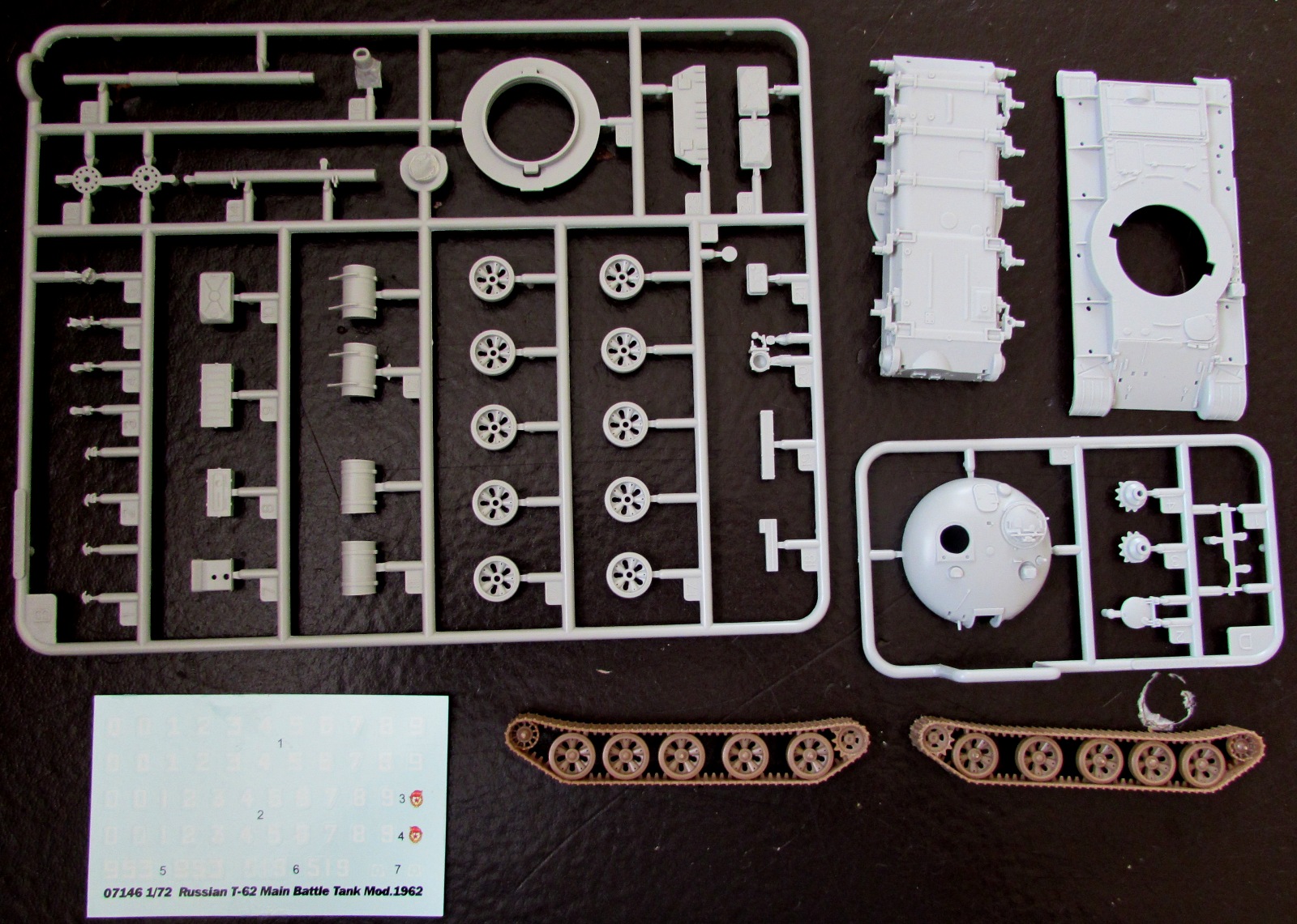 Собирать это хотя бы без минимальных доработок - себя не уважать. Когда буду собирать именно Т-62 (этот набор пойдет на ИТ-1), буду брать башню от Танкограда и дополнять стволом - это как раз минимум. Максимум - полная замена ходовой, ствола и башни, а также перепил балансиров, МТО и корпуса. Думаю, даже не каждый мастер-копийщик на такое решится.