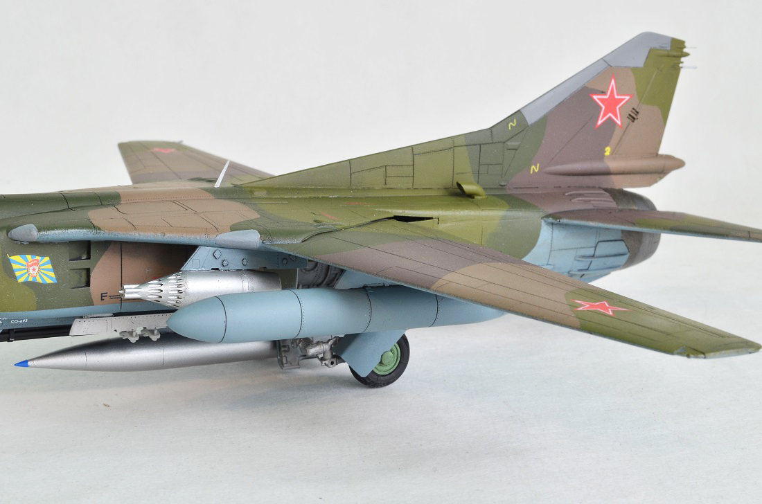 Также на модели доработал диски колес передней опоры шасси, роизводитель дает их на МиГ-23 . Декаль из набора .