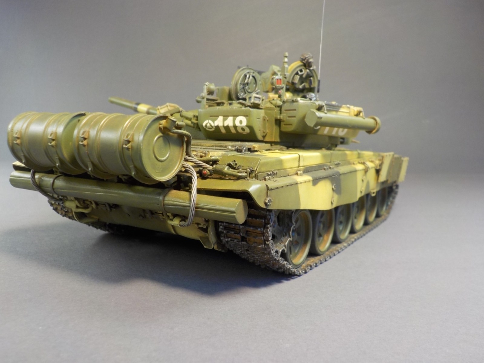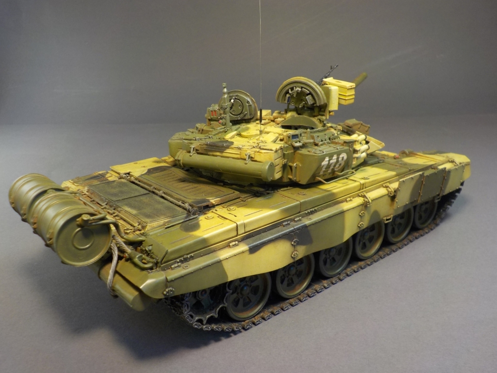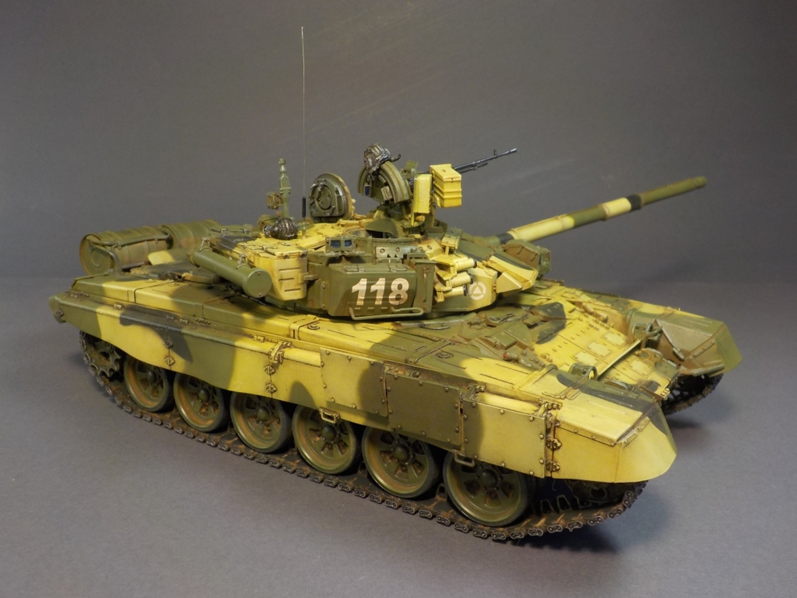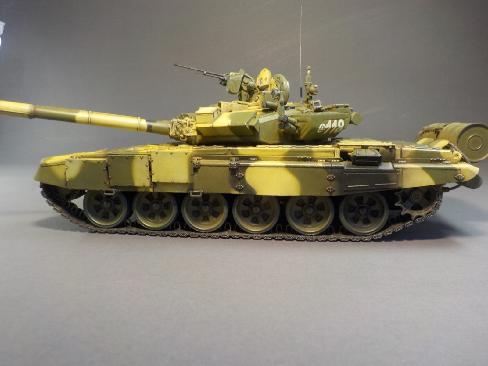 Доброго времени Уважаемые коллеги по творчеству! Представляю Вашему вниманию модель танка Т-90А от фирмы MENG. Набор очень понравился стыкуемость деталей отличная, дана рабочая подвеска,рабочие гусеницы,моторный отсек с двигателем.Модель выполнена из коробки от себя добавил тросы собственного производства и антенну из гитарной струны.Красил модель аэрографом красками от фирмы MR.HOBBY № 2,3,26,137,303,47,46,181. Смывка TAMIYA,фильтры масляные краски,пигменты ZIP maket. Пачкать и грязнить сильно не стал нравятся чистые машины.Приятного просмотра удачи.