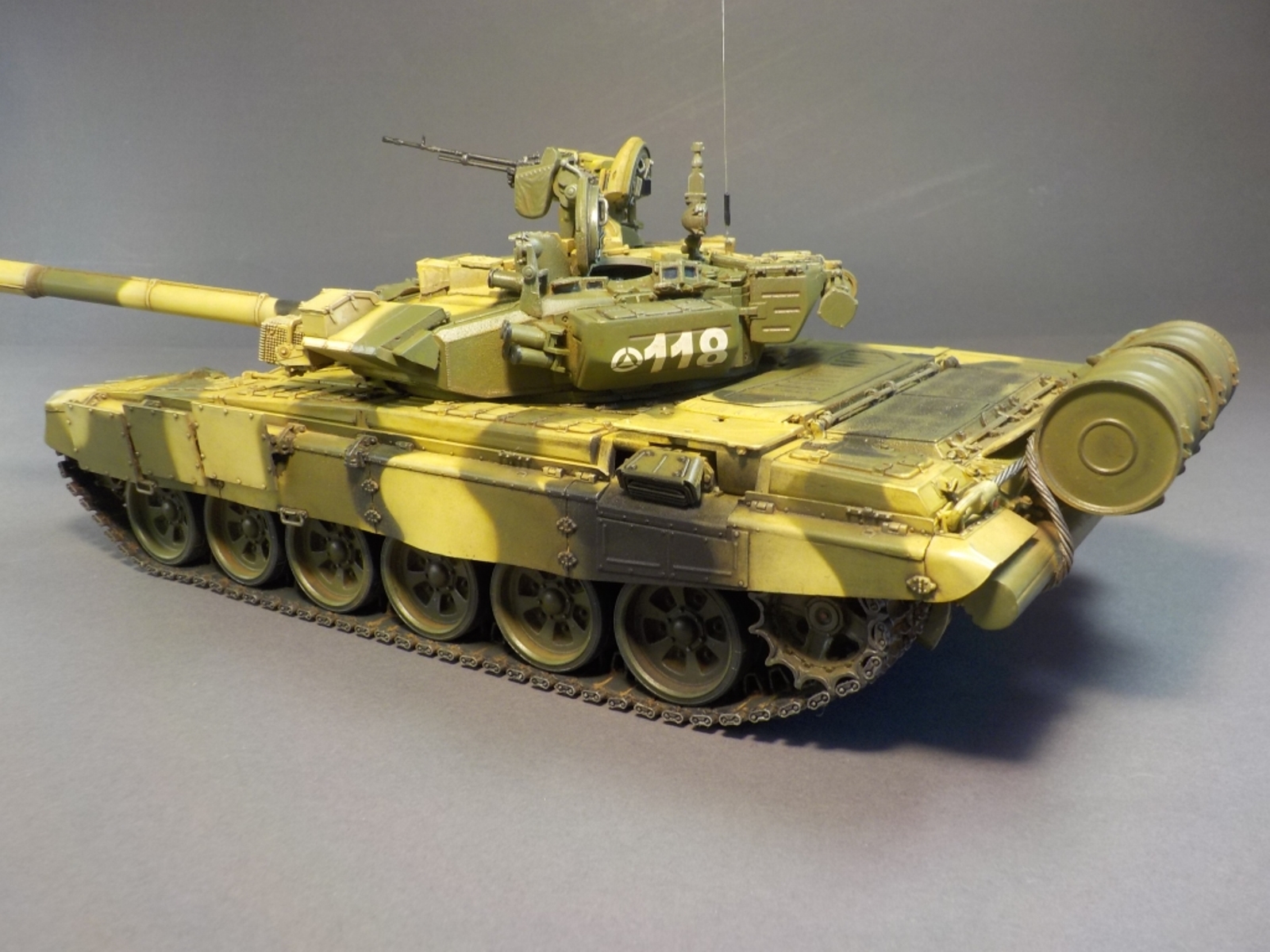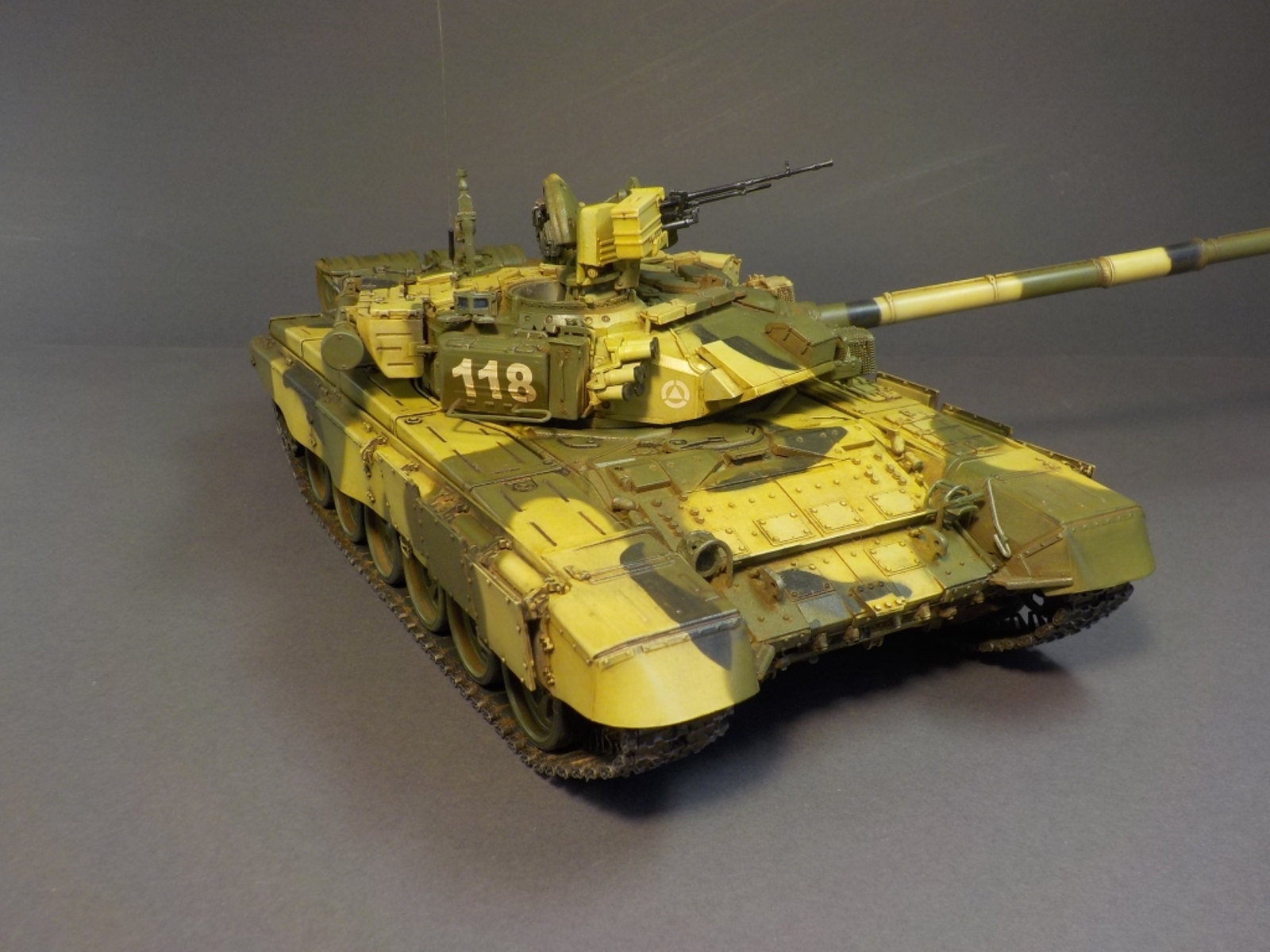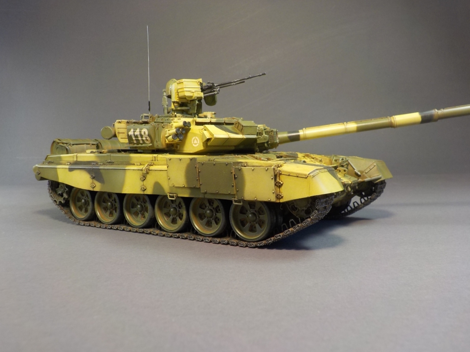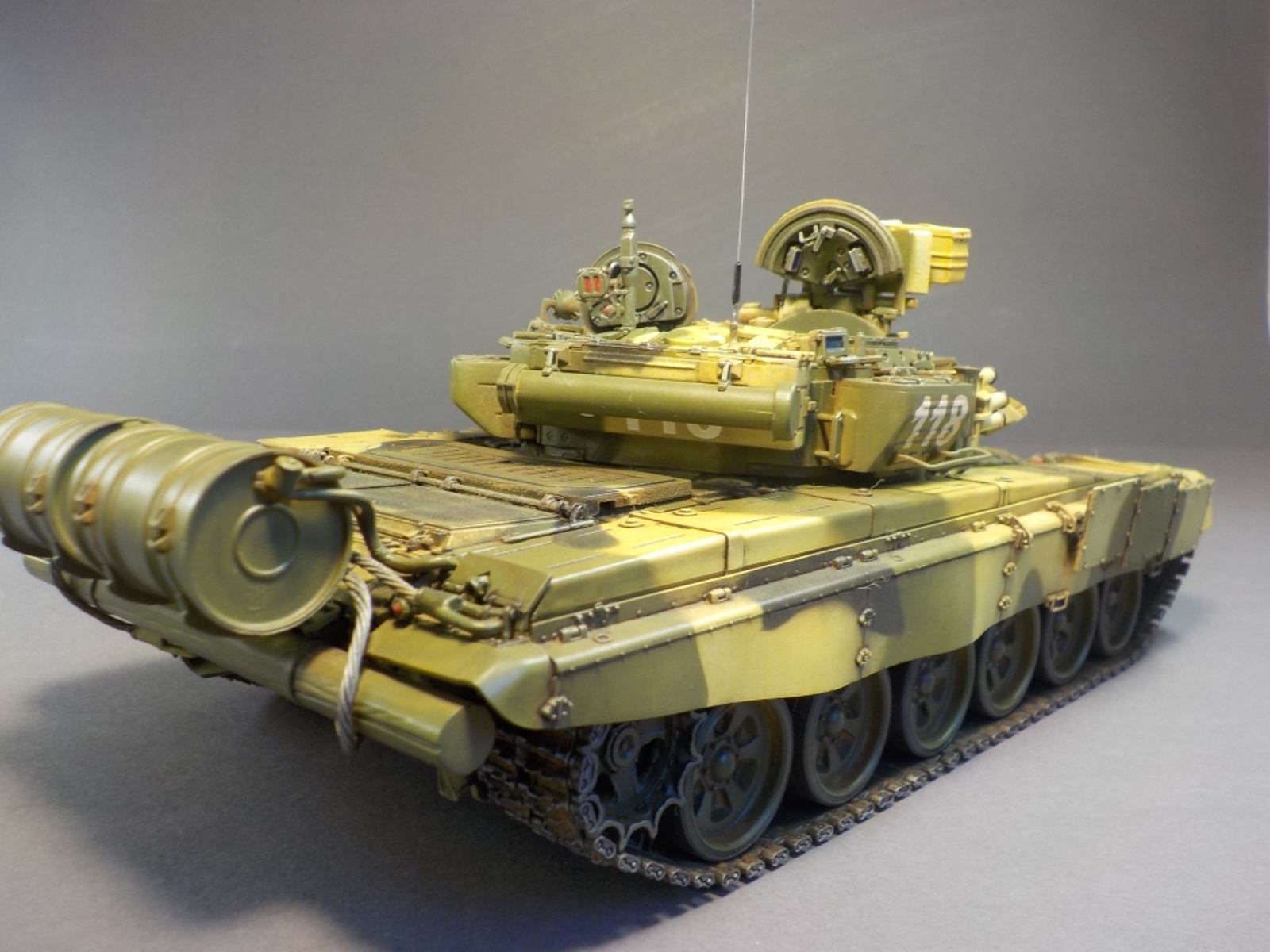 Доброго времени Уважаемые коллеги по творчеству! Представляю Вашему вниманию модель танка Т-90А от фирмы MENG. Набор очень понравился стыкуемость деталей отличная, дана рабочая подвеска,рабочие гусеницы,моторный отсек с двигателем.Модель выполнена из коробки от себя добавил тросы собственного производства и антенну из гитарной струны.Красил модель аэрографом красками от фирмы MR.HOBBY № 2,3,26,137,303,47,46,181. Смывка TAMIYA,фильтры масляные краски,пигменты ZIP maket. Пачкать и грязнить сильно не стал нравятся чистые машины.Приятного просмотра удачи.