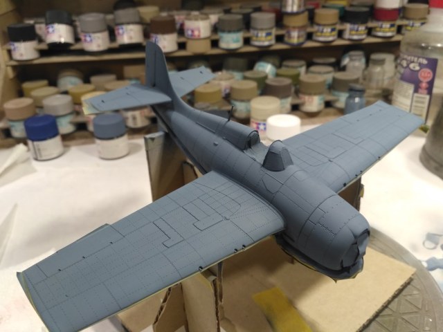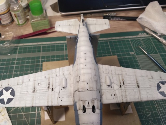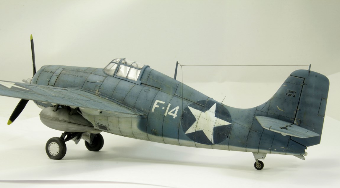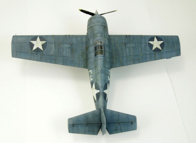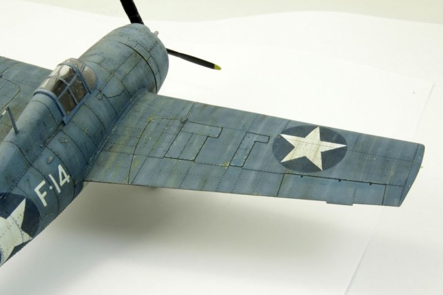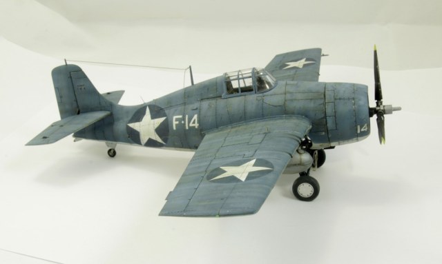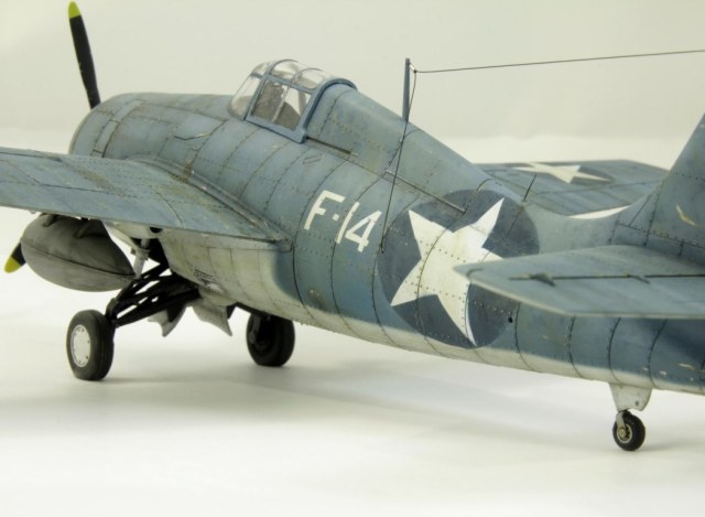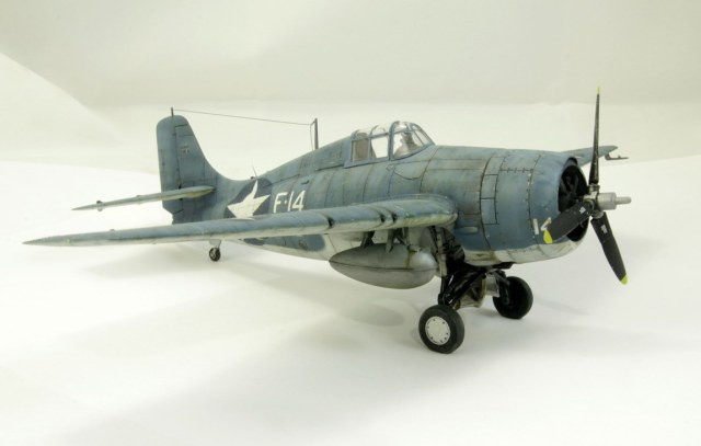 Вторая модель в рамках освоение авиамоделизма. Авторский взгляд на представителя палубной авиации США. Без исторической привязки и матчасти. Собран без дополнений. Антенну перетянул. Окрашен акрилом Tamiya и Gunze. Везеринг маслом, пигментами. Применялся солевой метод, сколы выполнены выцарапыванием краски. Опознавательные знаки – маски.