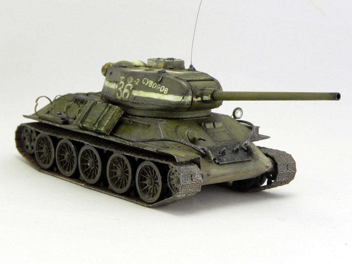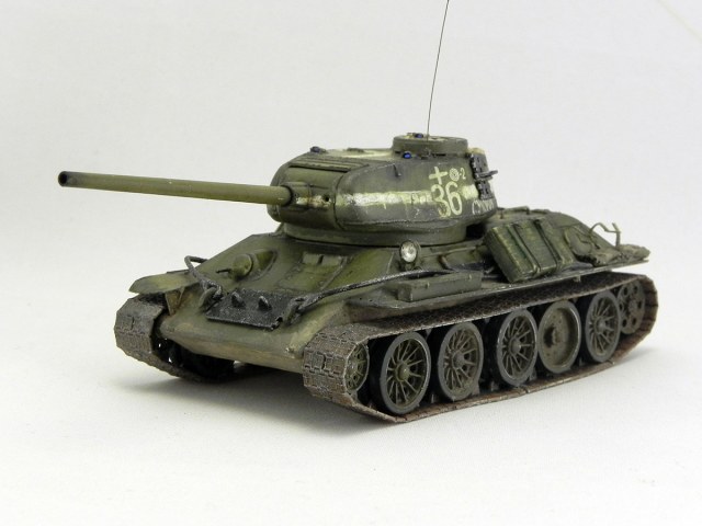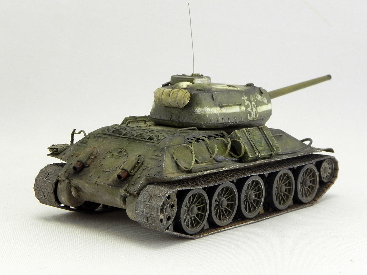 Маленькая тридцатьчетвёрка. Модель не плохая, но матчасть "хромает". Подробный список доработок есть в "М-Хобби". Я лишь повторил его. В качестве прототипа выбрал машину из 3-й Гвардейской Танковой армии, принимавшей участие в штурме Берлина. От себя добавил травлёные решётки от Armory, сеточку от пакетика с чаем и обвес (ящики, брезент и т.д.) Красил и пачкал продукцией Mig. Небольшую сказку можно найти тут. А здесь всем приятного просмотра.