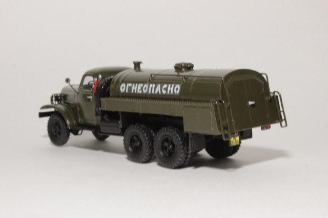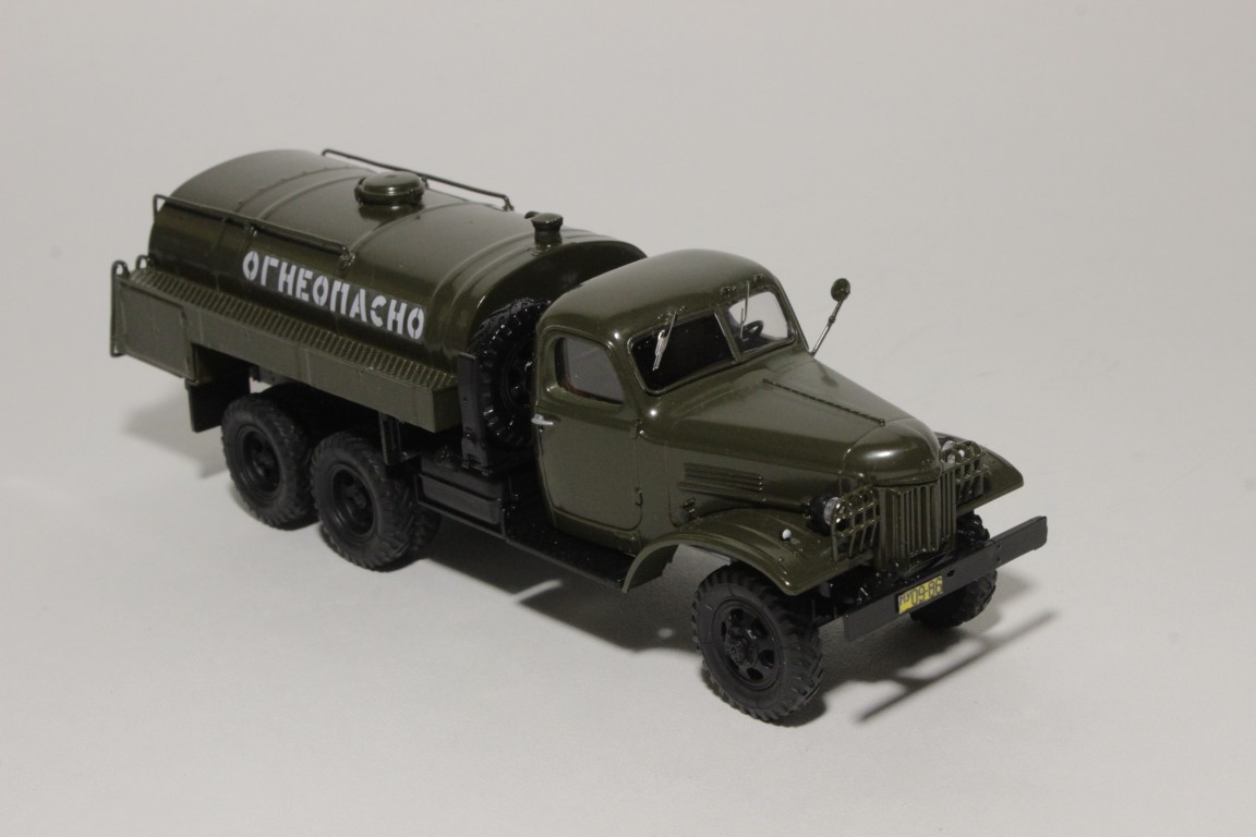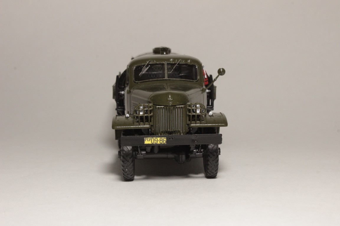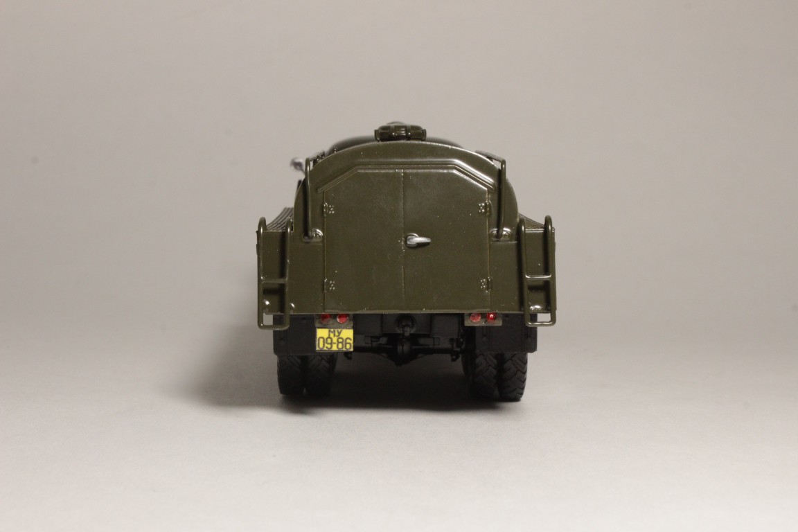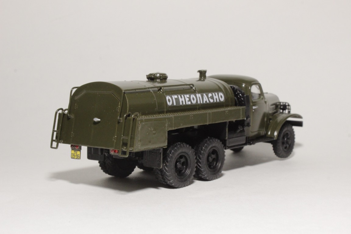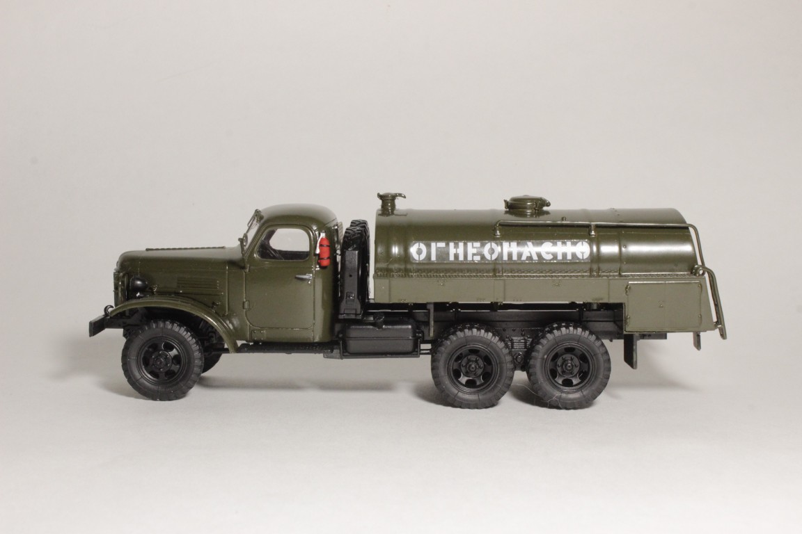 Изкоробочная сборка кита. Пришлось переделать поручни на самой бочке, так как при отделении от литника родные поломались по частицам, добавил декали "огнеопасно" от Максима. Машина московская.