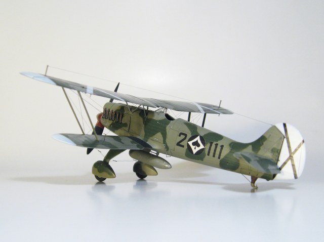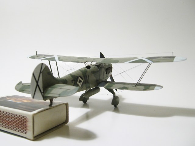 Один из самых сложных этапов- сборка бипланной коробки. Это утверждение справедливо для любой модели биплана, кроме, разве что, И-15, у которого верхнее крыло устанавливается прямо на фюзеляж (тоже когда-то собирал). Родные стойки (и крыльевые, и стойки кабана)заменил на самодельные металлические (сделал из стальной проволоки), т.к. хрупкий пластик не выдержит стачивания до масштабной толщины. Обтекатели на них- из суперклея. Очень непросто было собрать эту конструкцию правильно, без перекосов, но результат себя оправдал- получилось и прочно, и красиво.