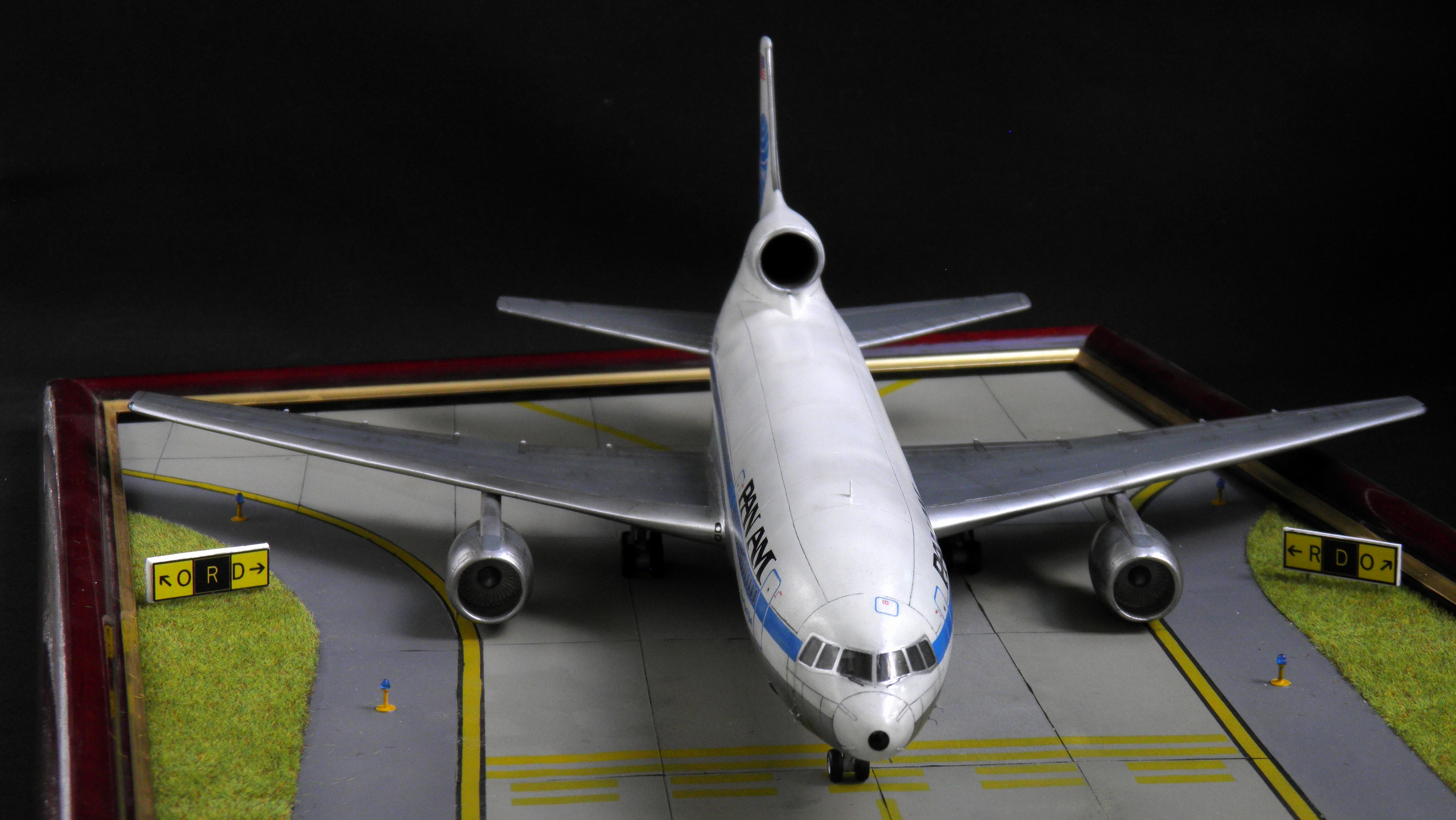 Судьба послала мне еще один подарок в виде Lockheed L-1011-500 Tristar от Восточного Экспресса. По сравнению с моей предыдущей моделью того же самолета, здесь есть изменения. Во-первых качество литья стало похуже. Залитая местами расшивка и ухудшившаяся стыкуемость половин деталей тому подтверждение. Во-вторых, данная модификация получила другие двигатели, новые антенны, канал воздухозаборника второго двигателя и обтекатель перед воздухозабоником второго двигателя. Одним из недостатков данной модели можно назвать слишком короткие основные стойки шасси, из-за которых двигатели почти легли на землю. К моему большому сожалению, ясно это стало только после покраски обдекаливания и лакировки всей модели, стойки приклеены в последнюю очередь и исправление этого недостатка могло повлечь за собой большие неприятности, поэтому оставил как есть. Также впервые при вскрытии опечатанной в заводскую пленку коробки вдруг обнаружилась недостача половинки руля высоты (деталь №11). Такого я еще не видел, но при обращении на завод, данная деталь была выслана отдельно. В остальном же, все типично для данного производителя: огромные щели и прочие "прелести". Было потрачено большое количество шпатли и нервов. Субъективно, первая такая модель собиралась гораздо легче. От себя добавил интерьер кабины пилотов и традиционные БАНО. Остальное - изкаропка. Покраска Ганза, Тамия, Алклад, Модел Мастер, футура. Тонировка - масло и карандаш для ресниц. Чуть не забыл: я в прошлом году кусочек аэродрома запилил, все показать забывал, вот на первых фотках можно посмотреть.