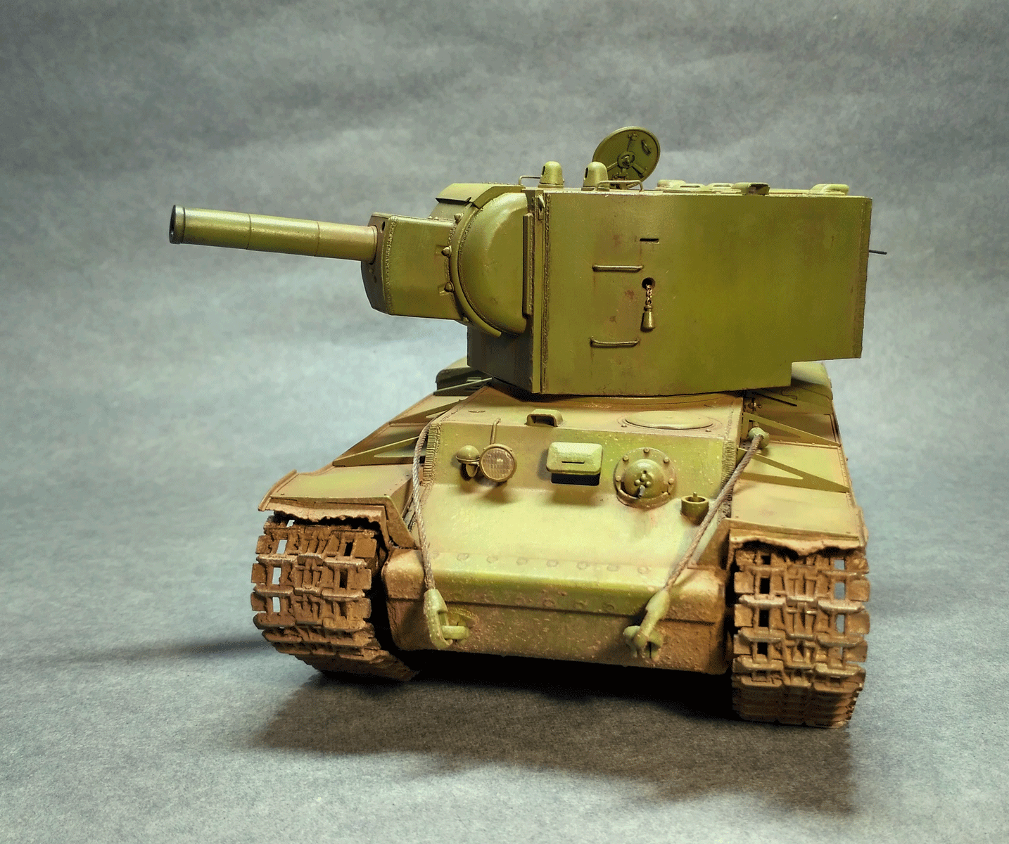 Доброго времени суток! Выношу на ваше рассмотрение очередную модель советского танкостроения - тяжёлый штурмовой танк КВ-2. Модель не имеет исторической привязки и глубоких углублений в матчасть. Просто одна из тех машин периода ВОВ в которой основные усилия старался уделить художественной части. Набор не заставил проводить серьезных хирургических вмешательств и оставил хорошее впечатление хоть и местами попилить надо было. Рассказывать про все изменения и запилы нет смысла, так как с этим набором сталкивались практически все и знают его косяки.