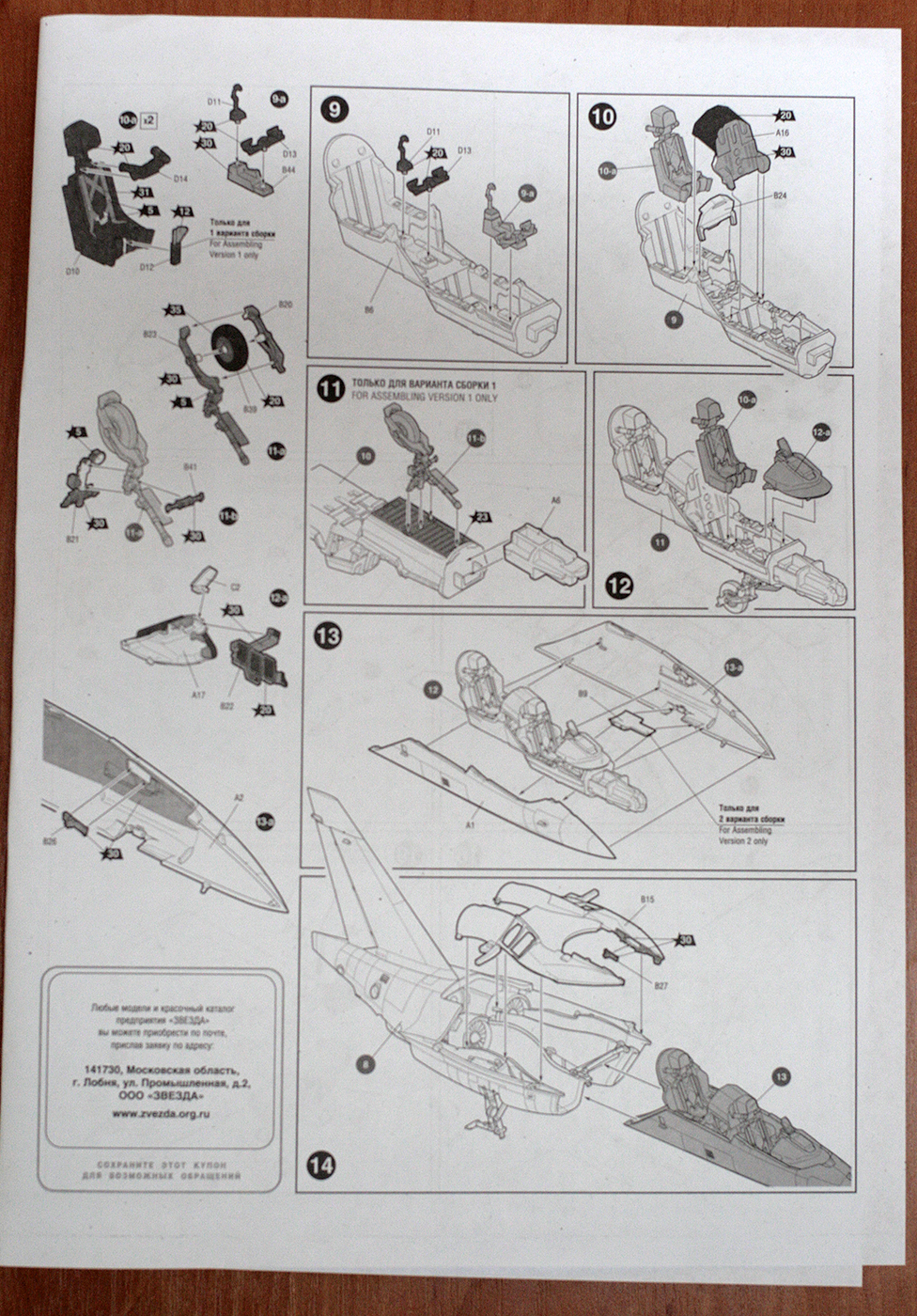 Инструкция в формате книжки из отдельных листов, черно-белая, тоже в стандартном стиле Звезды. Вполне подробная и понятная. Схема окраски дана в виде цветного вкладыша, это нововведение Звезды не может не радовать. Отдельно, в инструкции, дана схема нанесения технических надписей.