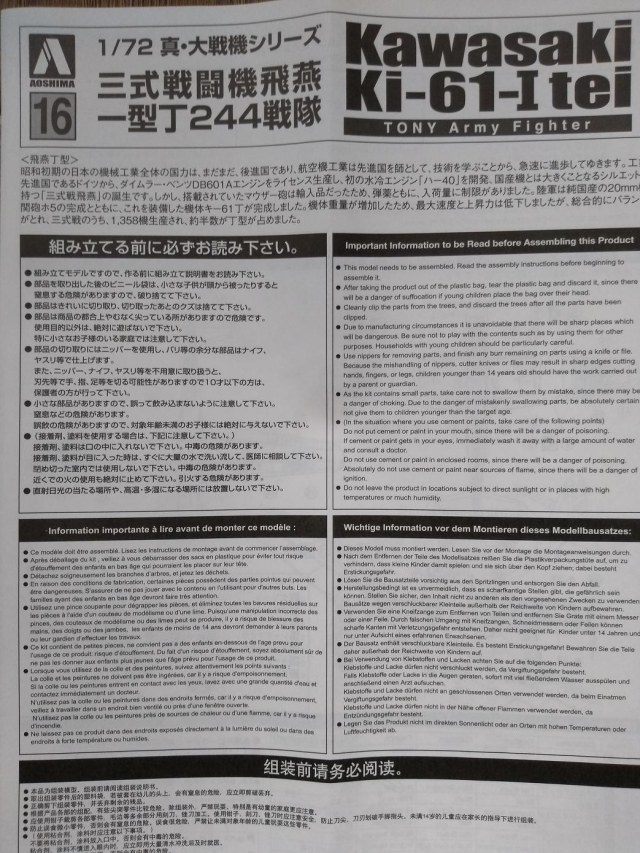 Выкладываю обзор на не заслуженно обойденную вниманием модель самолета Kawasaki Ki-61-I, масштаб 1/72, производства Aoshima.