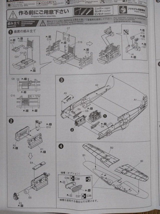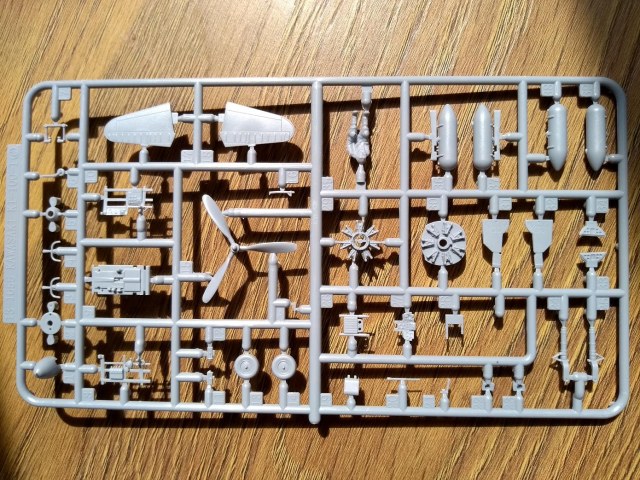 Сама модель, если так можно выразиться новой Aoshima, отлита в сером пластике, с аккуратной тонкой и подробной расшивкой (к слову, Ki-100 от Aoshima, который я в настоящее время собираю, имеет отлично подогнанные детали, прекрасно обрабатывается ).