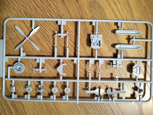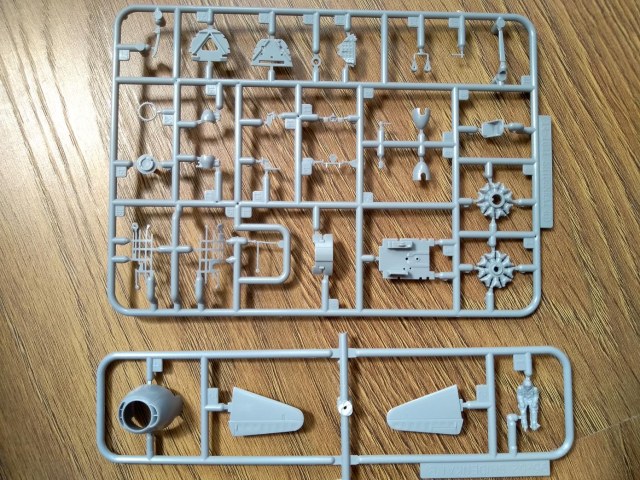 Модель отлита в сером пластике, с аккуратной тонкой и подробной расшивкой, и довольно не плохим интерьером кабины.