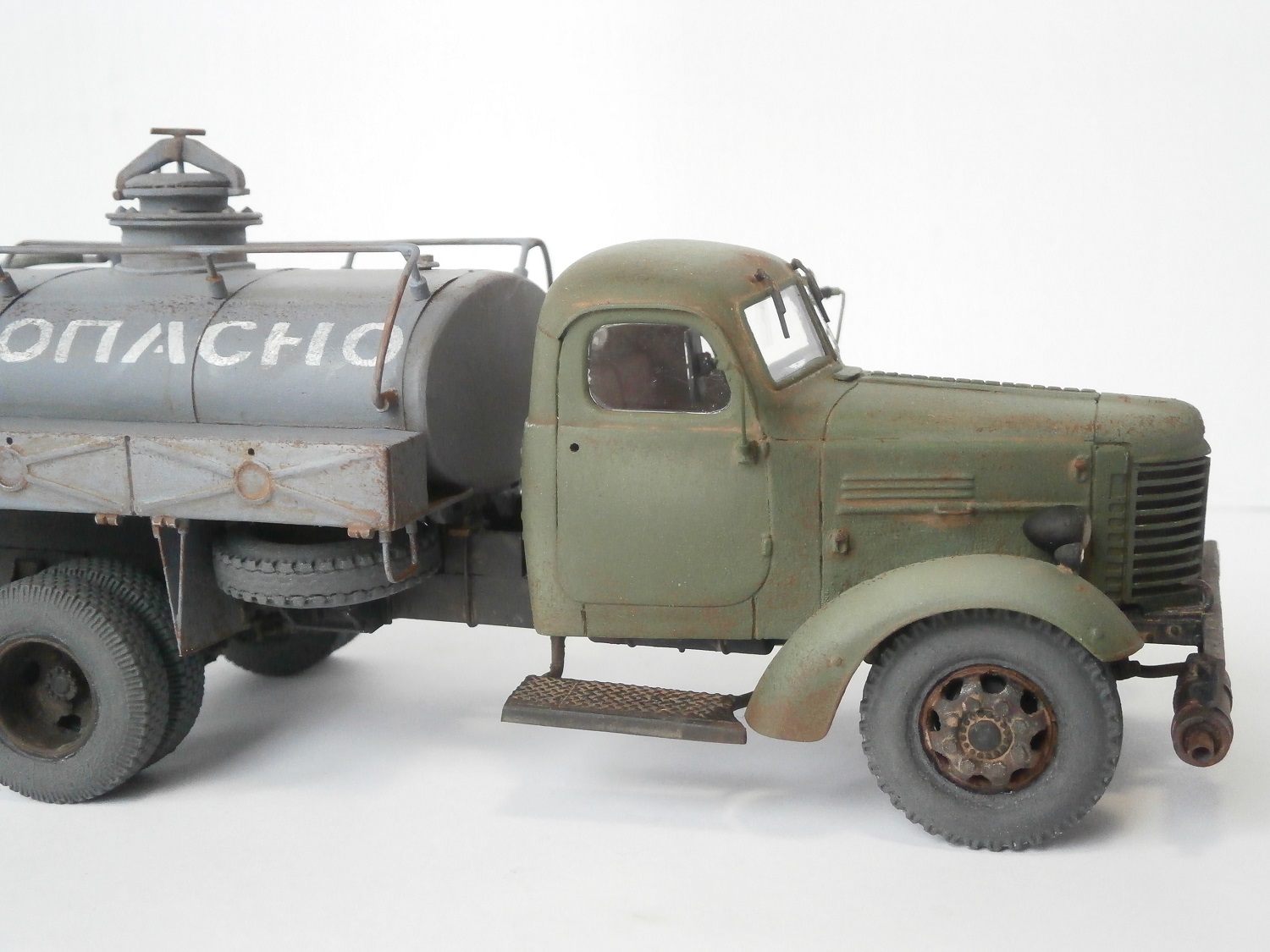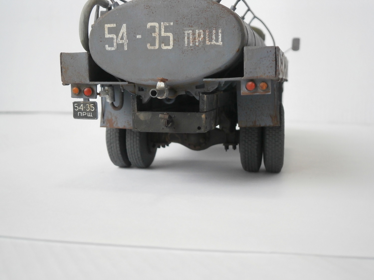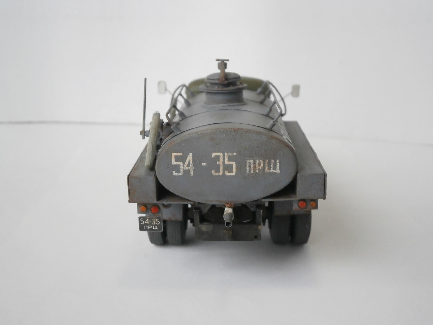 Хмурый такой бензовоз получился. Не хватает ещё по одному кронштейну крепления подножек к раме.