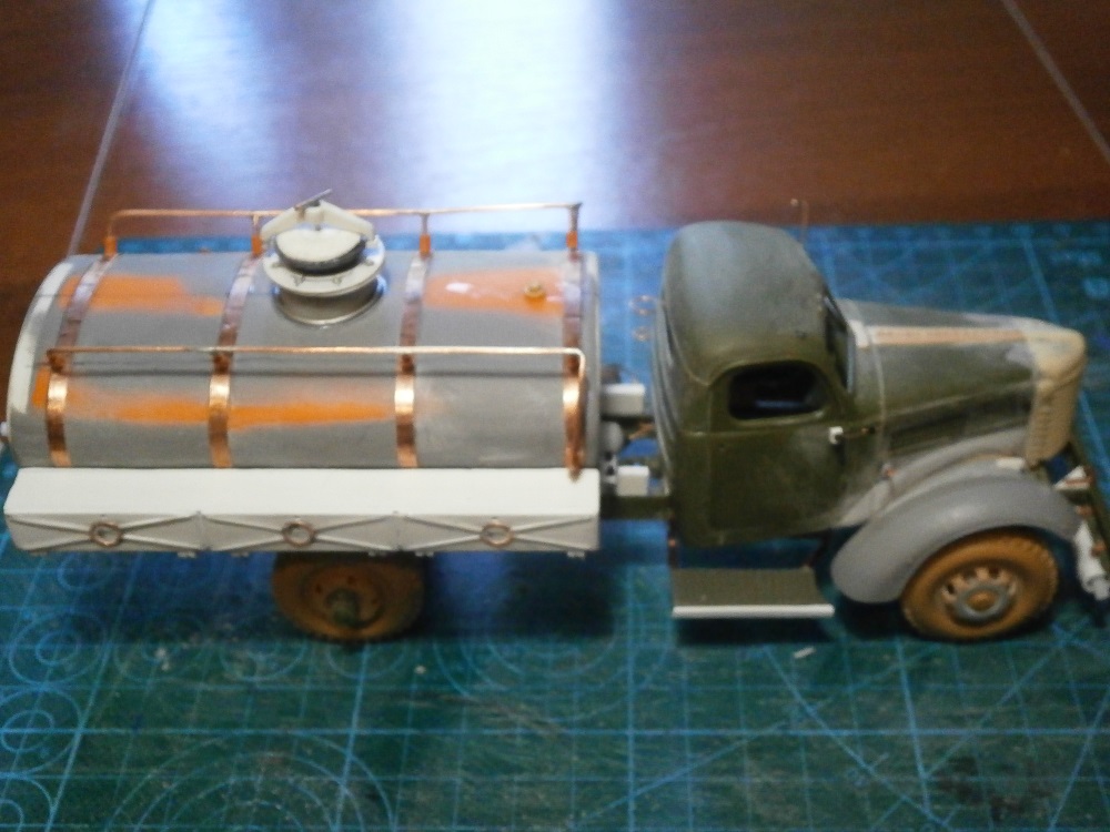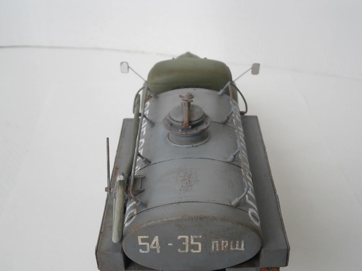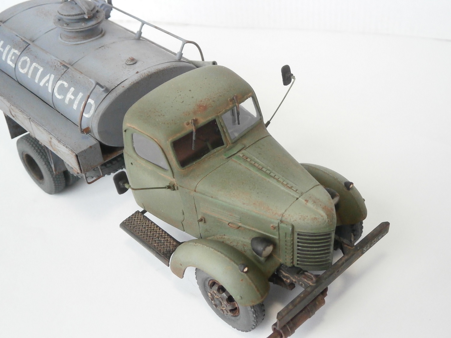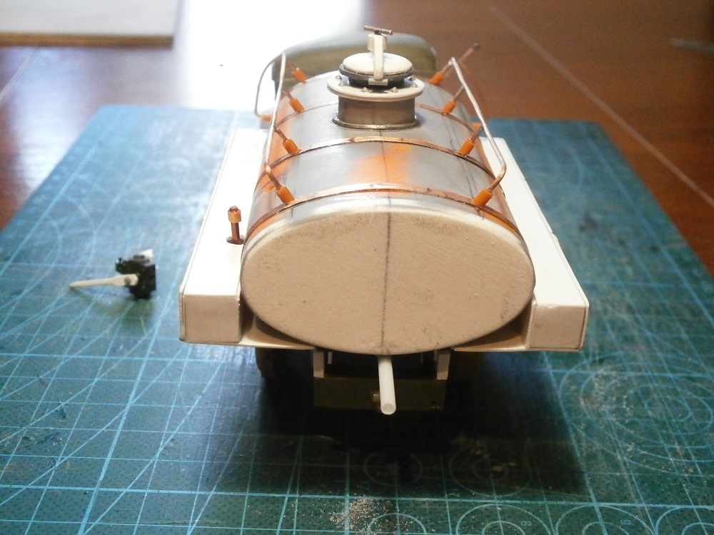 Хмурый такой бензовоз получился. Не хватает ещё по одному кронштейну крепления подножек к раме.