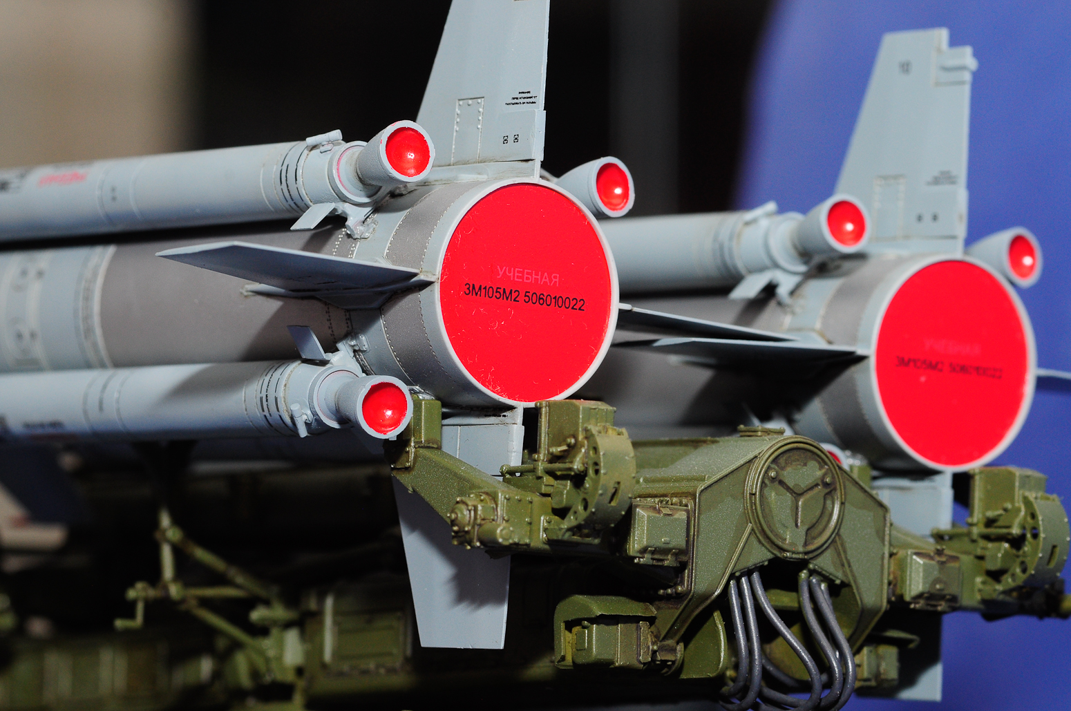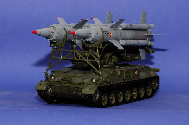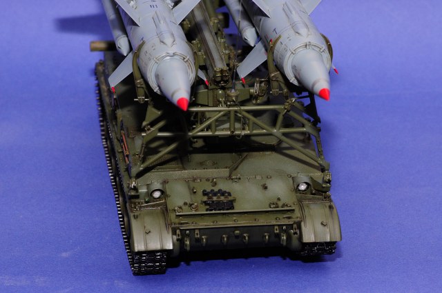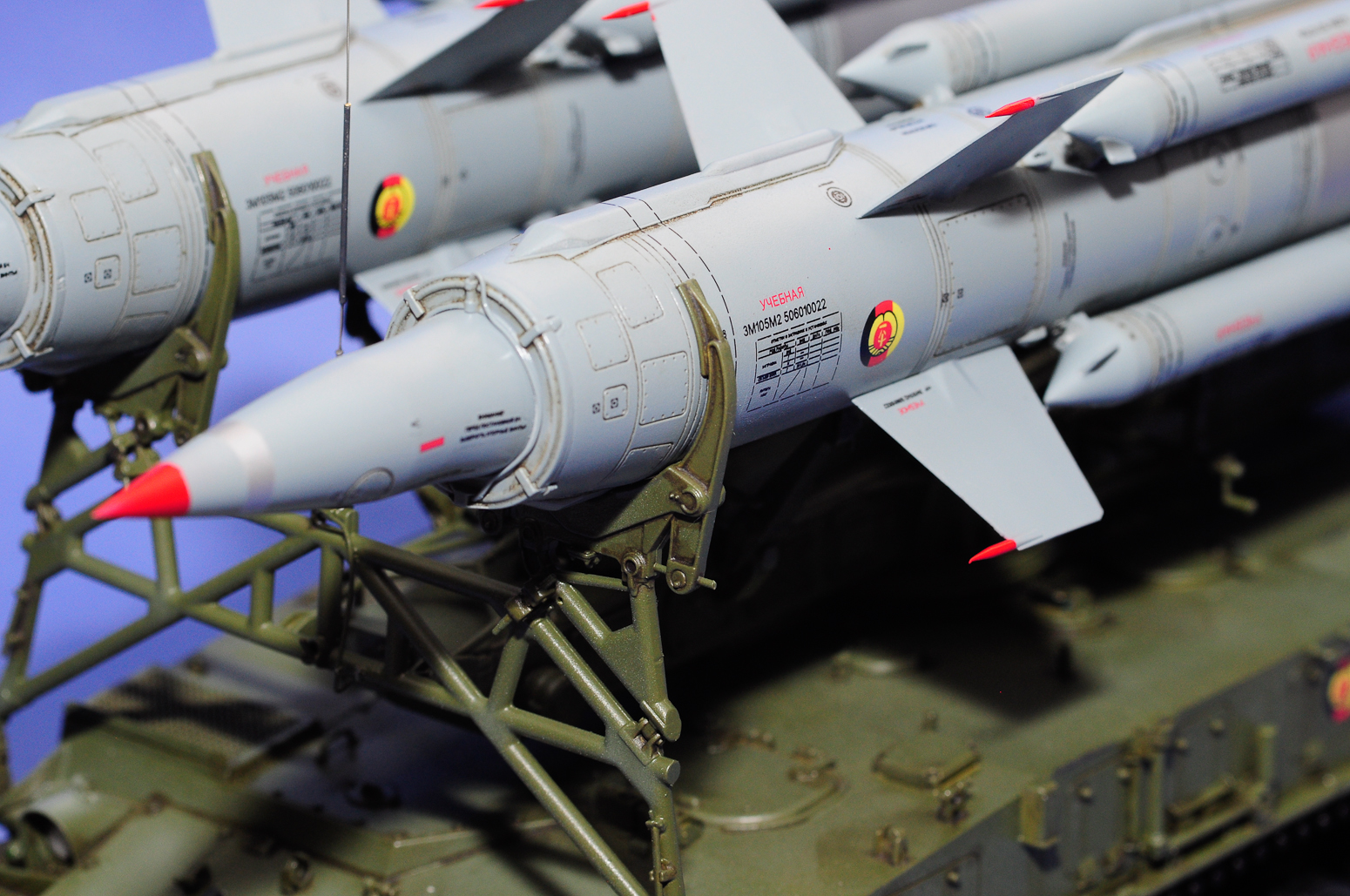 Ваша модель сделано хорошо, как искоробочный вариант. Потому, что не смотря на хорошую деталировку, эту модель, по-хорошему, дорабатывать и дорабатывать. Особенно в мелочах. Но даже так она смотрится эффектно и красиво. Ваша модель мне нравится. Хорошо покрашены ракеты, имею в виду их цвет. Почти правильный. Самоход тоже собран и покрашен хорошо. И я, с удовольствием посмотрев вашу работу, ставлю вам высший бал!