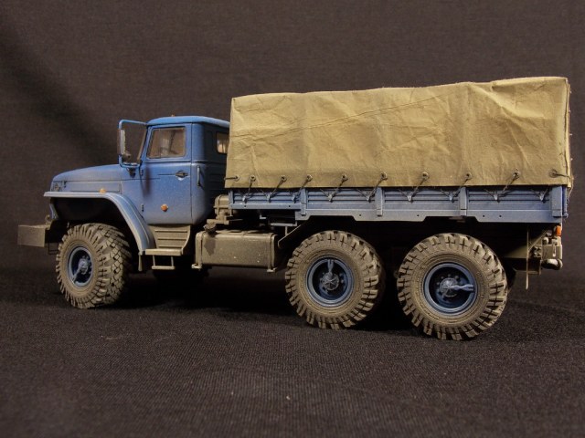 -лохматый тент :-) задумка,что это простой брезент,а не нынешние ламинированные,или из чего их там делают,а стойку под запаску не увидел смысла устанавливать,ежели в неё колесо не лезет,да и промежуток между кабиной и кузовом у звезды меньше положенного явно,там и штатное колесо впритык встаёт,а в реальности там места с запасом. Ну а чтоб совсем пусто не было,по моему ящик для барахла тут к месту пришёлся