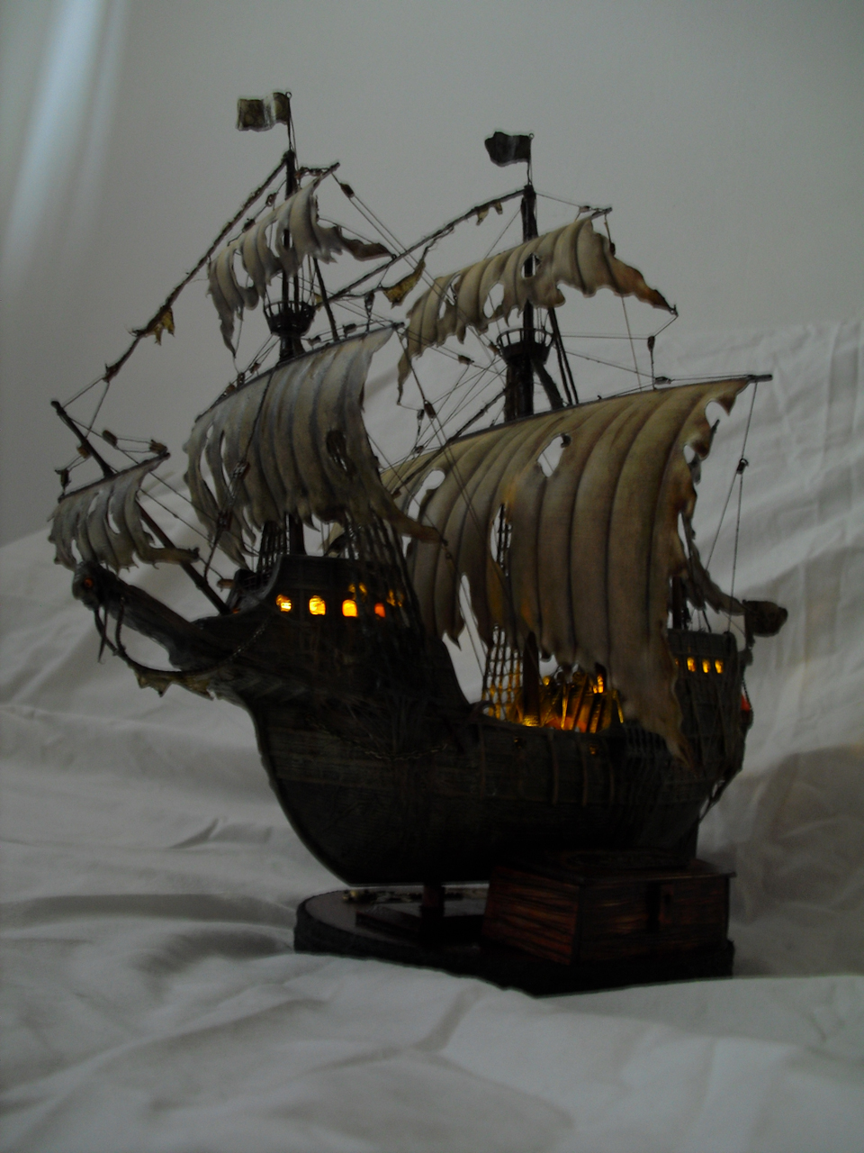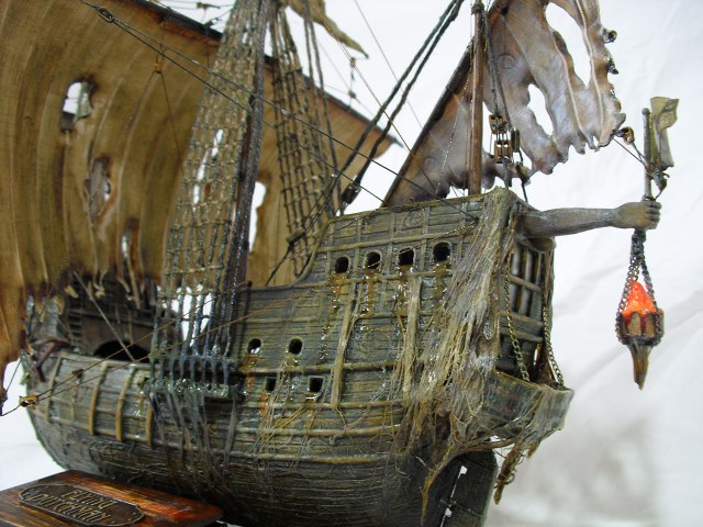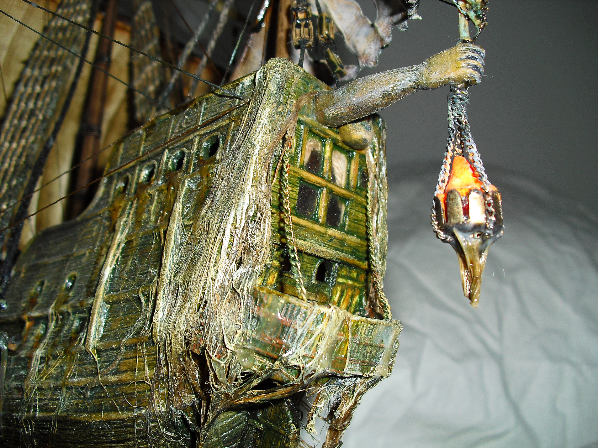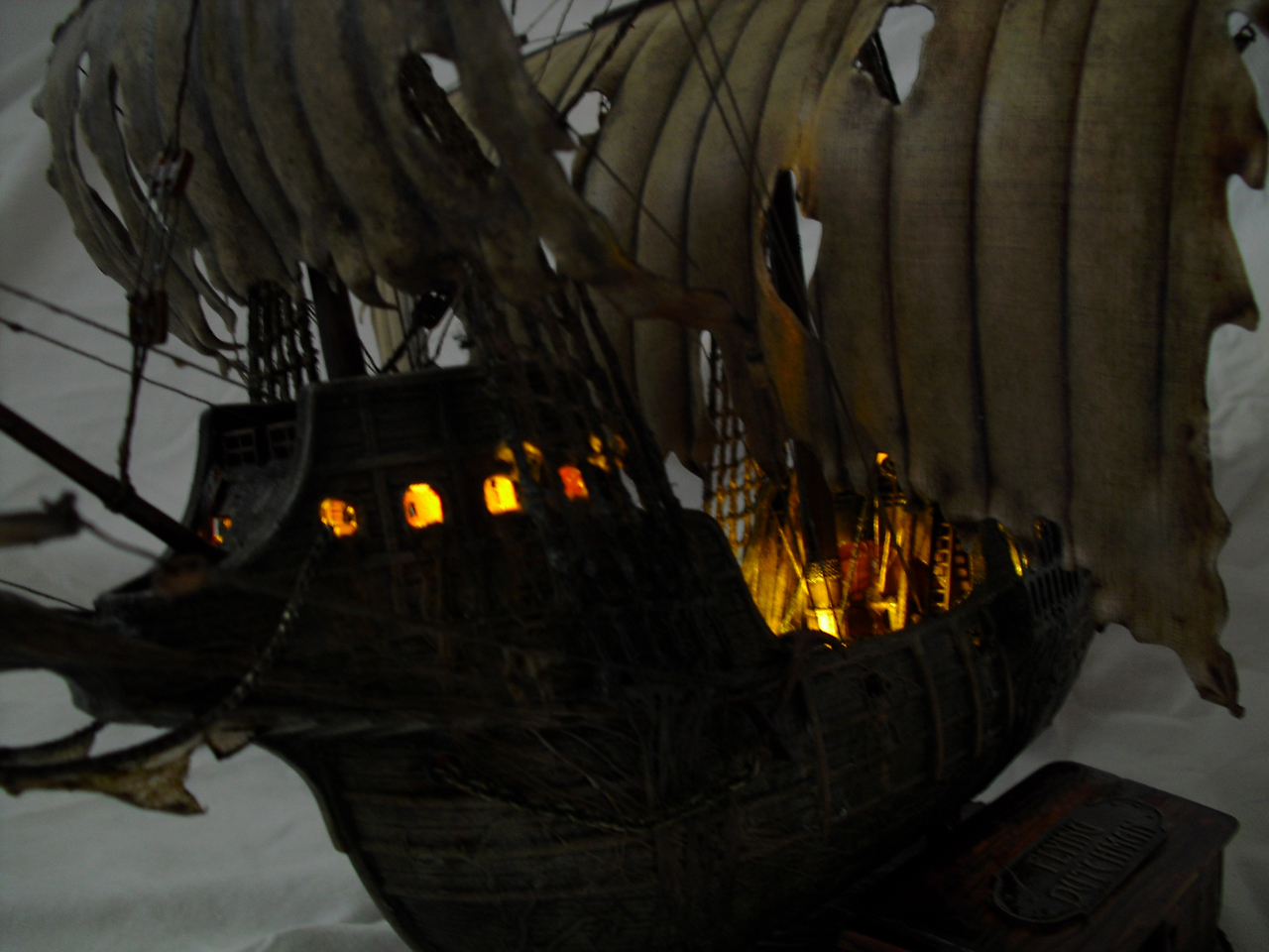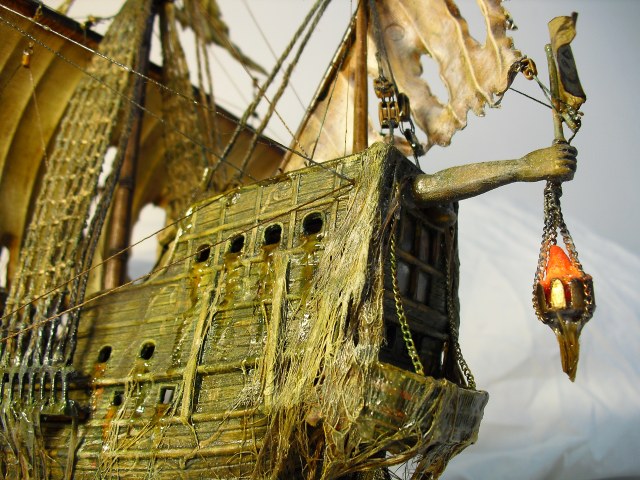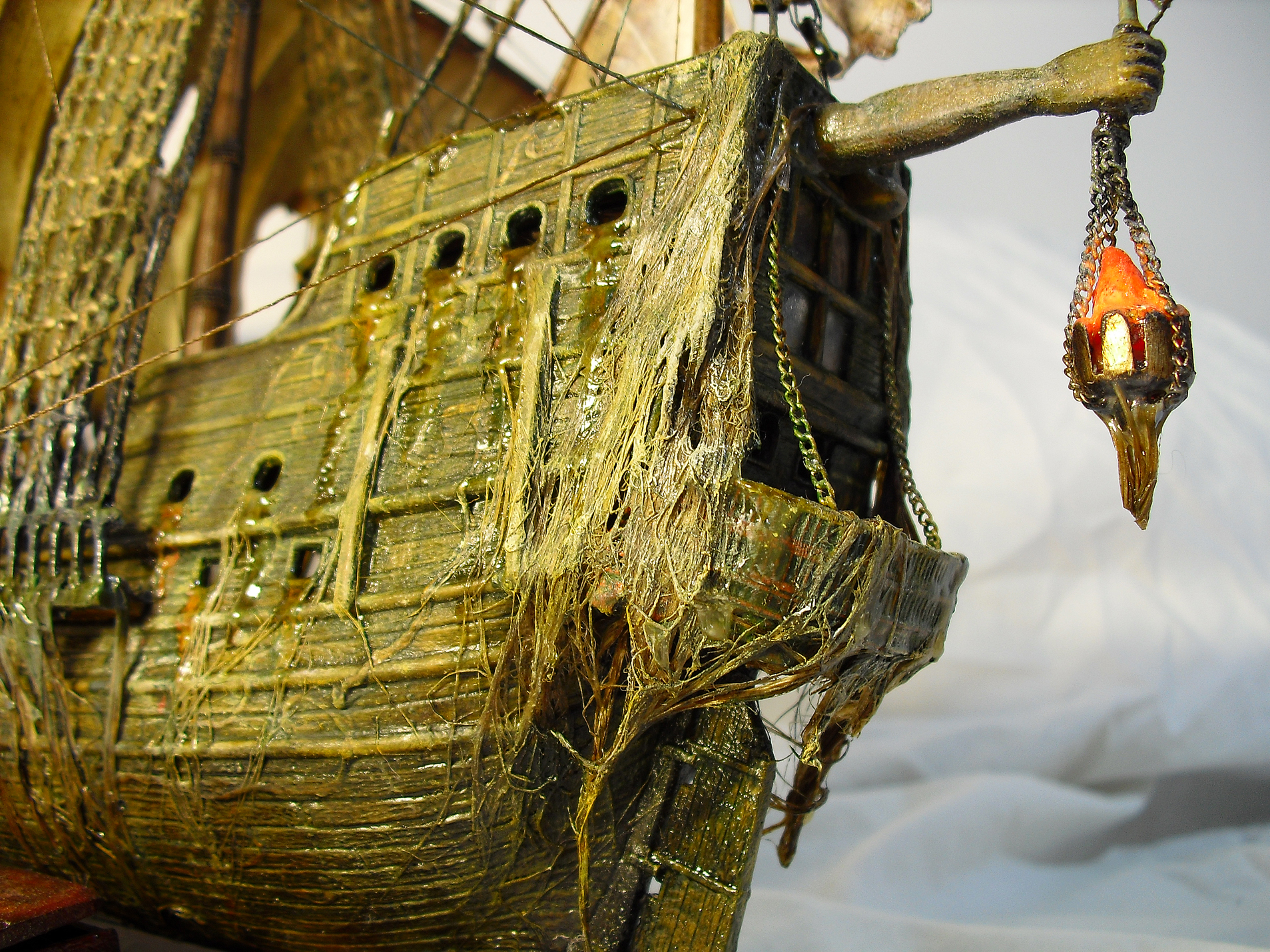 На мой взгляд, именно образ летучего голландца, корабля-призрака, корабля без экипажа - не сильно получился, т.к. внутренняя подсветка говорит о том, что корабль вполне себе обитаем. Сюда бы огни святого Эльма - вот это была бы бомба.
