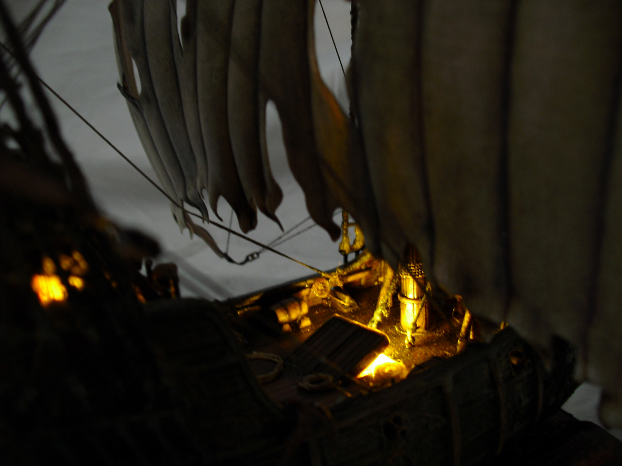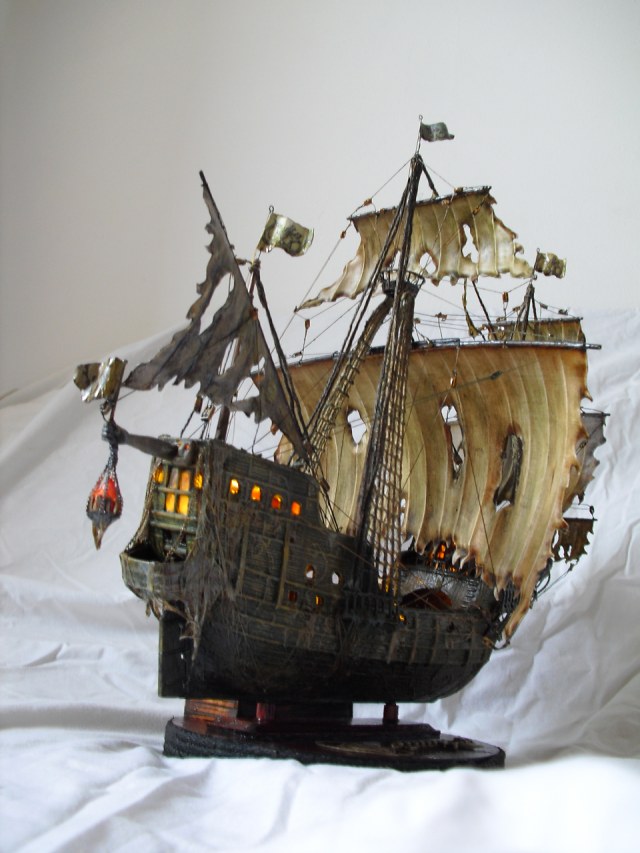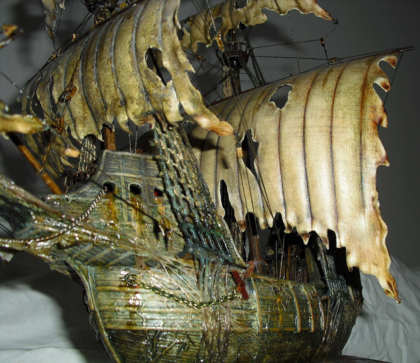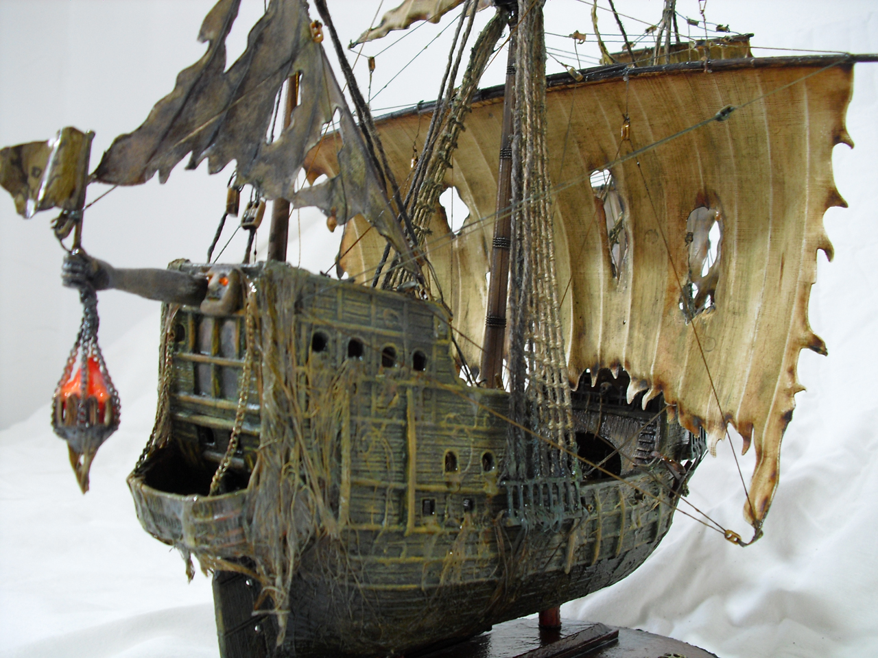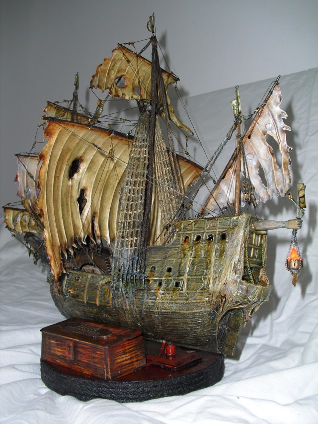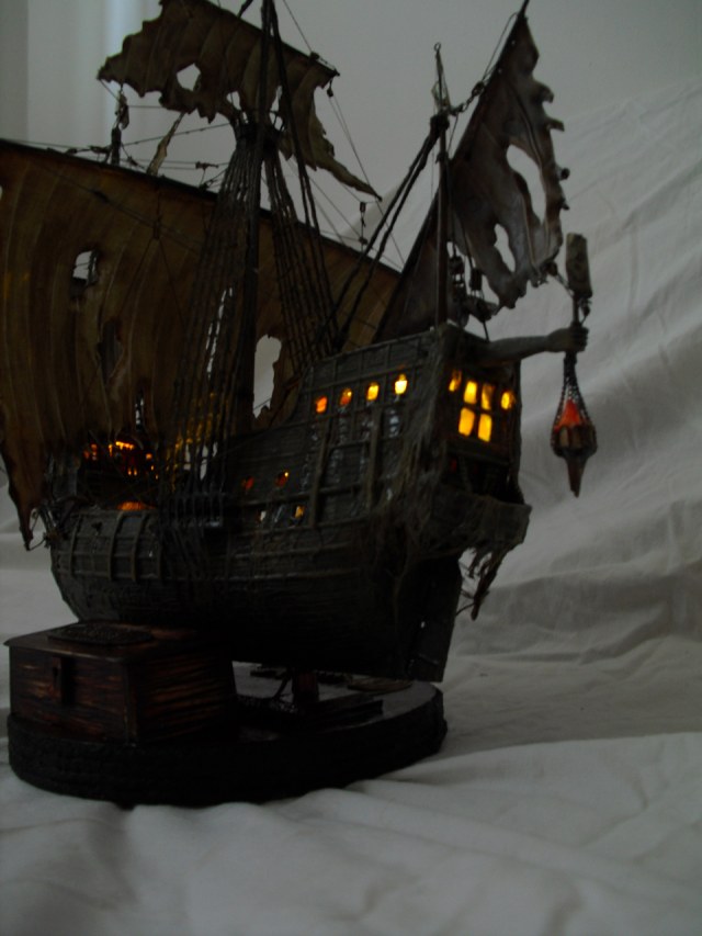 На мой взгляд, именно образ летучего голландца, корабля-призрака, корабля без экипажа - не сильно получился, т.к. внутренняя подсветка говорит о том, что корабль вполне себе обитаем. Сюда бы огни святого Эльма - вот это была бы бомба.