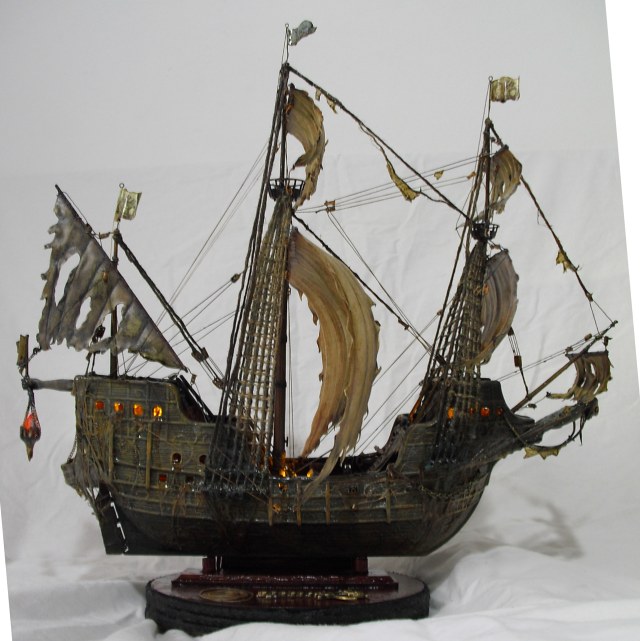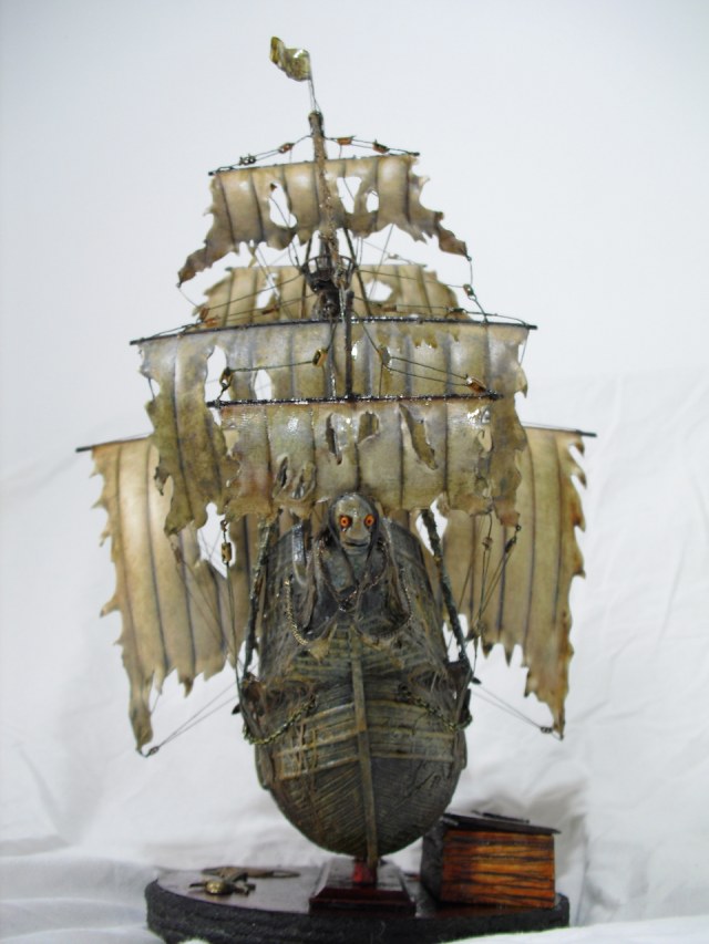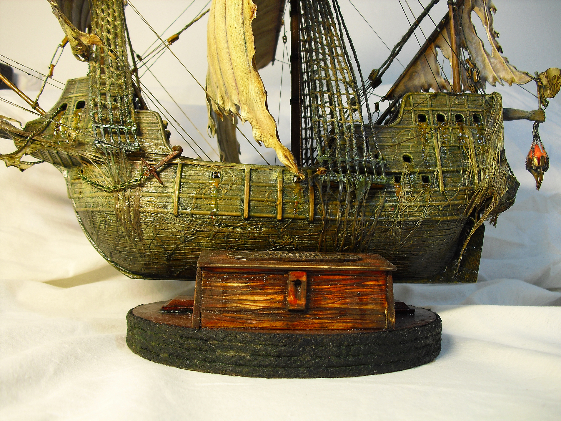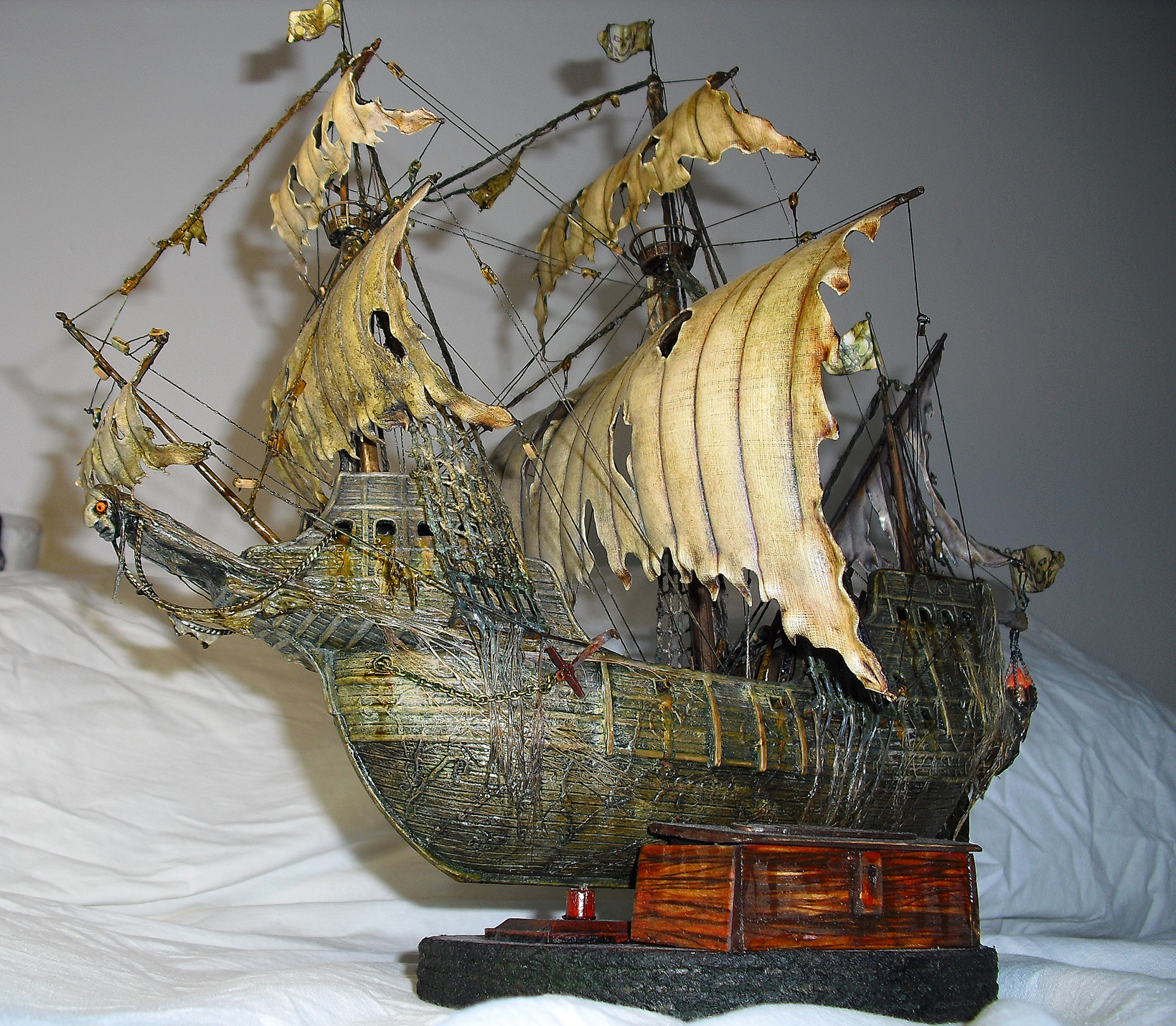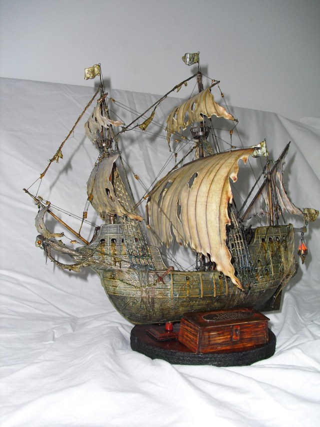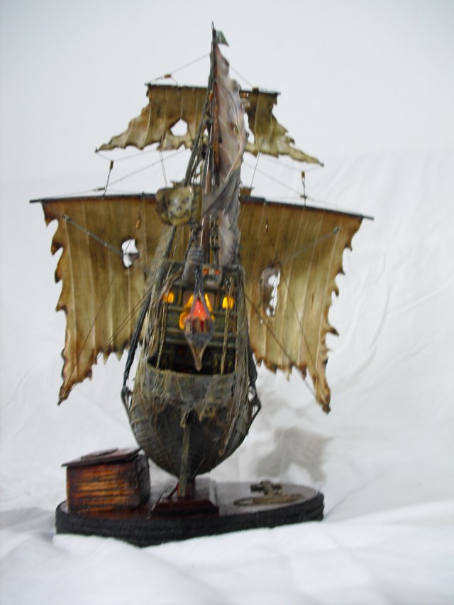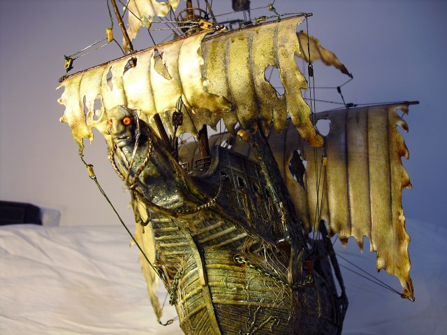 На мой взгляд, именно образ летучего голландца, корабля-призрака, корабля без экипажа - не сильно получился, т.к. внутренняя подсветка говорит о том, что корабль вполне себе обитаем. Сюда бы огни святого Эльма - вот это была бы бомба.