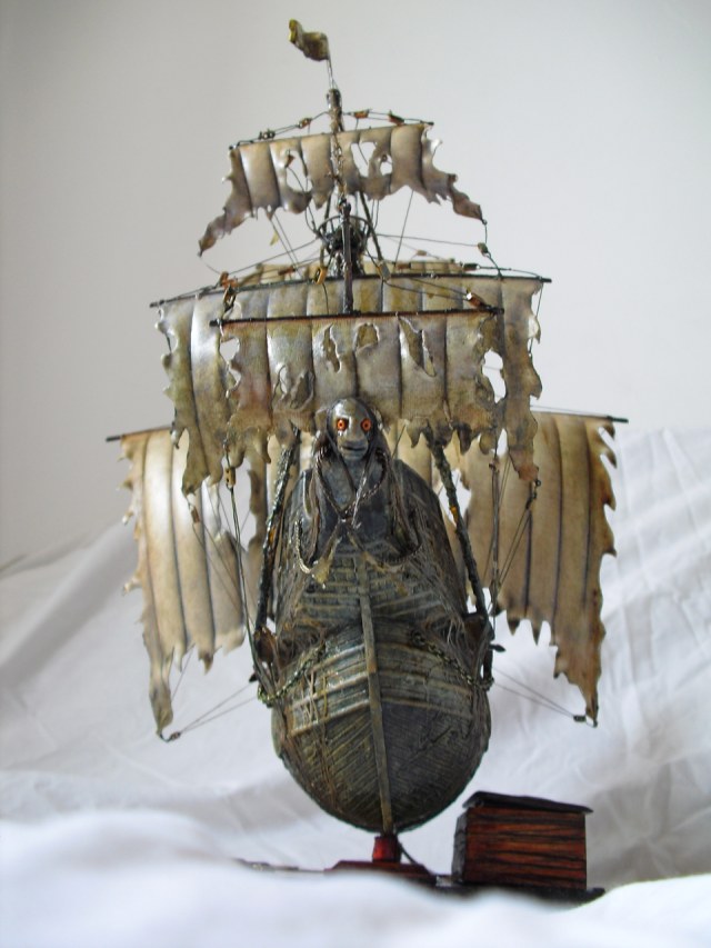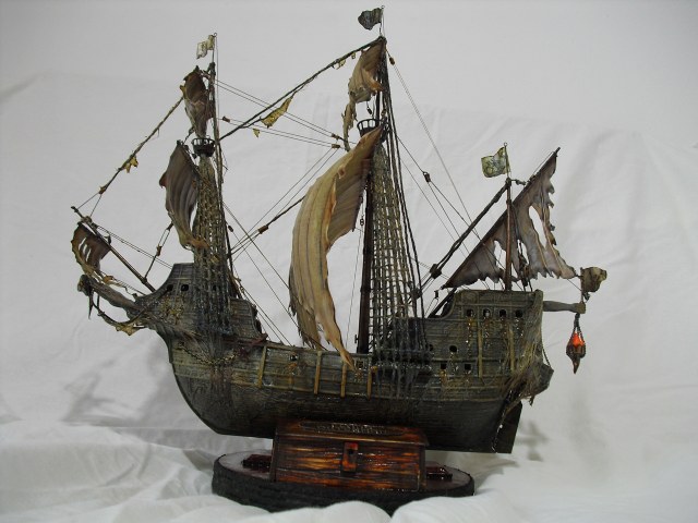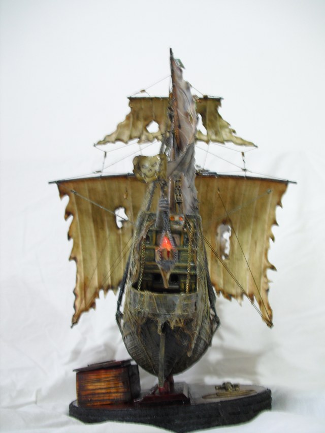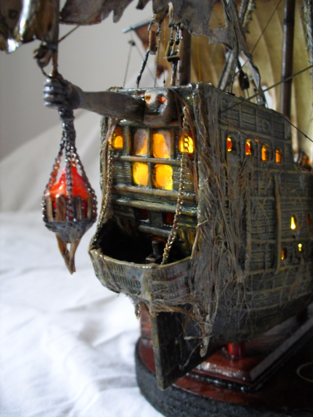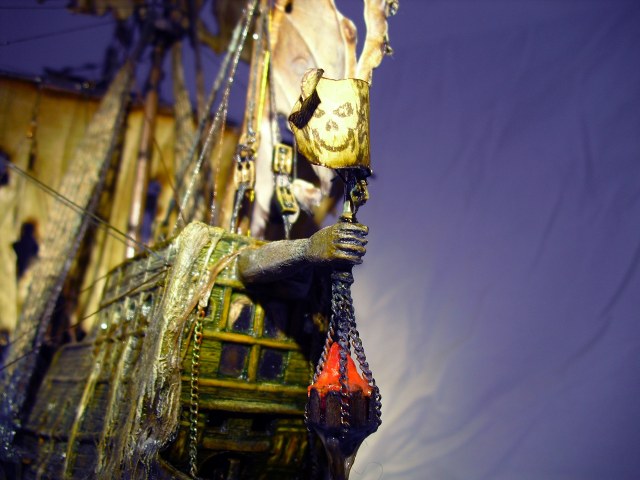 Душевная работа, такой забавный и в тоже время устрашающий кораблик получился. Да и фонарики как раз в тему. Паутинка хорошо смотрится. Правда, я думаю может ее стоило немного и на мачты набросать, но это так мысли в слух.