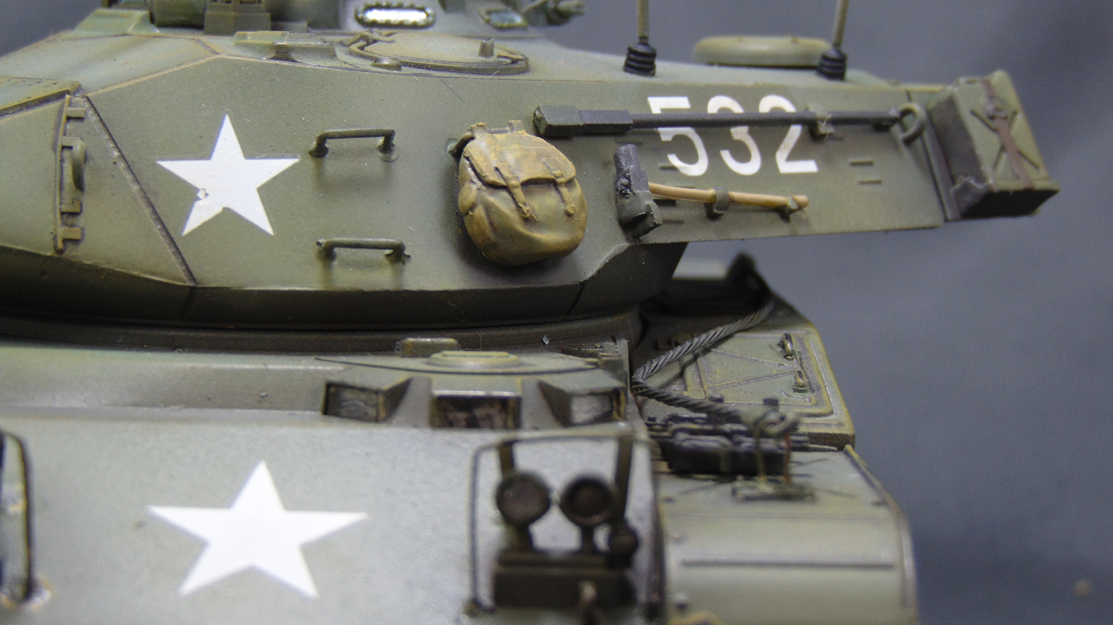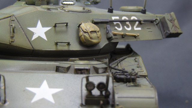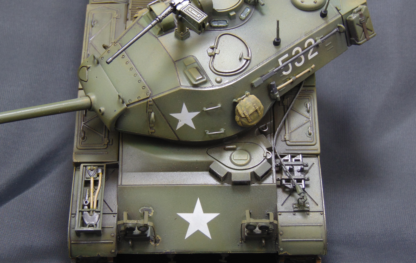 Согласен с замечаниями Охотника. Кстати, очень понравилась выштамповка на ящике, это бросающееся в глаза и поэтому больное место этого набора, расскажите как и из чего вы их сделали? Конечно, чтобы довести до более-менее приемлемого вида эту модель, нужно травление. К сожалению, Эдуард прекратил выпускать травло именно на эту модель от Тамии, а зря - именно там были травленые накладки на ящики с боковыми выштамповками. Среди травленых деталей к АФВКлубу таких накладок нет. В самом наборе старые канистры с одной ручкой и непонятно какой горловиной, танкист-гуманоид, грубо "слепленный" пулемет, гусеницы-резинки, грубые фары и их ограждения, отсутствует маска пушки, закрытый намертво люк заряжающего, нечто напоминающее инструмент, везде надо счищать стыки пресс-форм, пушечка из двух половинок, неправильно сделанные скобы на башне, но вполне себе неплохая геометрия башни и корпуса, и нет необдуманного членения деталей, от чего страдает относительно новая модель чисто АФВКлаба. Многие моделисты доводили эту модель до ума и получали маленький шедевр... Ваша в целом мне весьма понравилась.