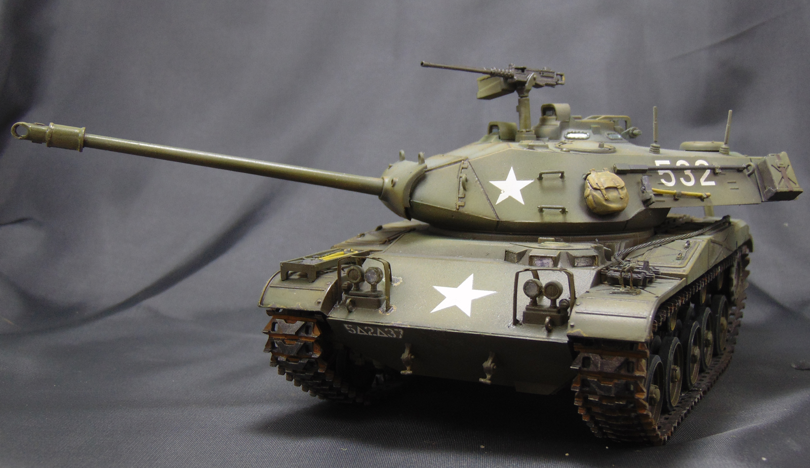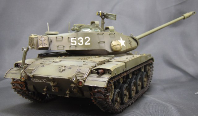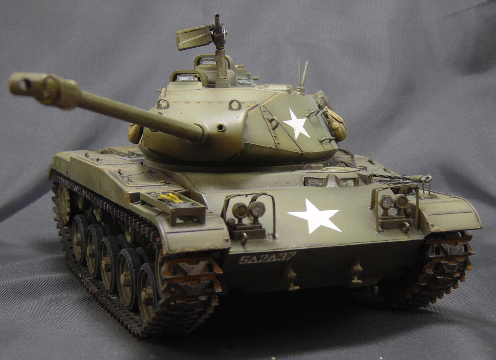 Старый, широкоизвестный кит Тамии. В целом, из ахтунга - пулемёт и гусеницы. Пулемёт поменял на академский, гусли оставил как есть.