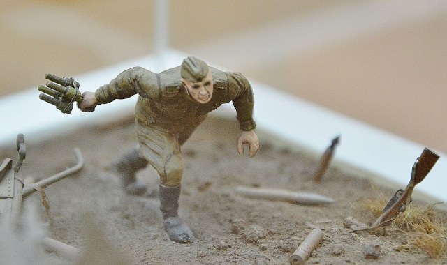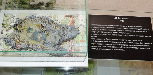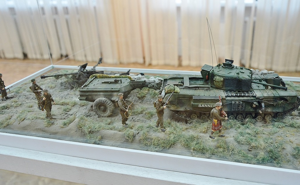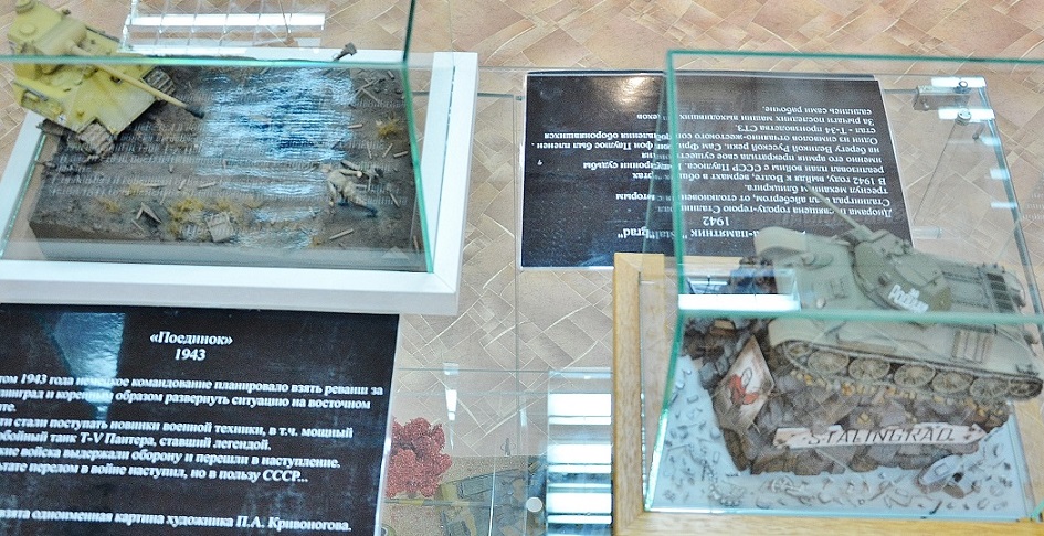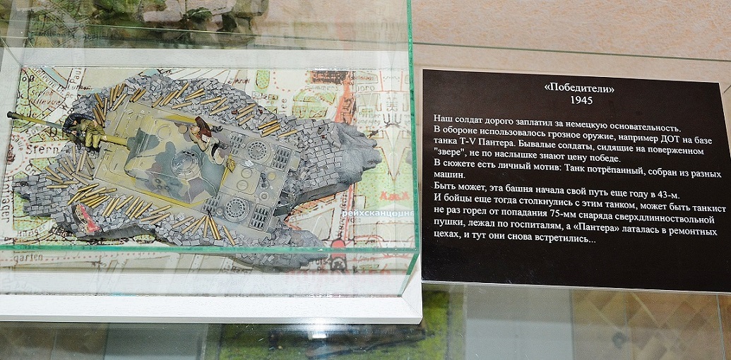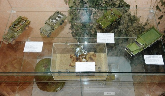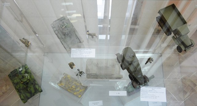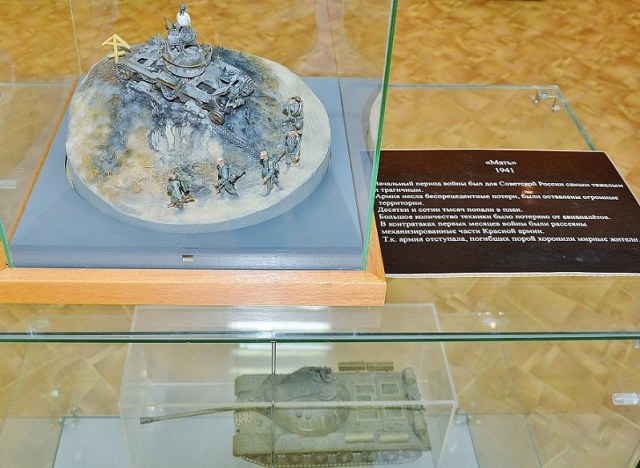 Ничего особо нового не поставили, в основном старье из музейных фондов. Ну и диорамы и техника от товарища Андрея Кудрина – руководителя модельной студии Мастерверк. Но, наверное, эту выставочку, с некоторой натяжкой, можно назвать «Межрегиональной» или даже «Всесоюзн…. Всероссийской». Стоят любезно предоставленные модели от друзей по «Каробке» из Москвы, Питера и Казани.