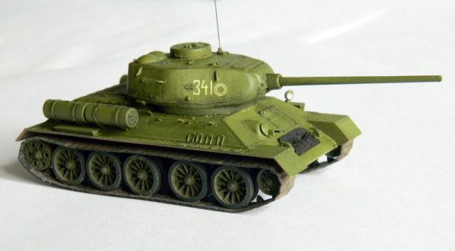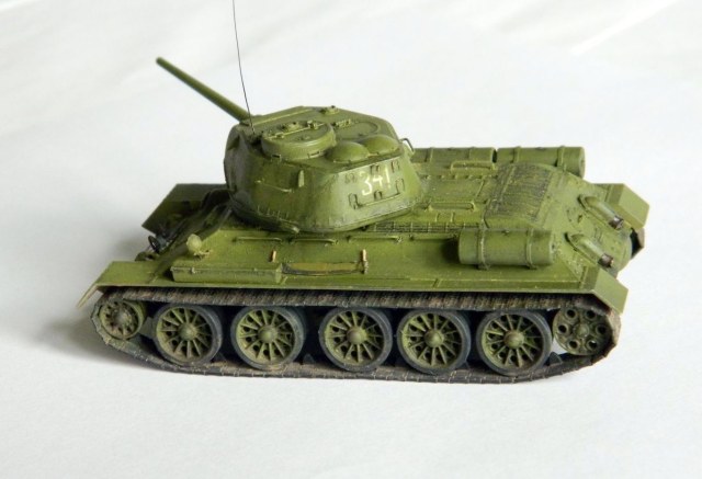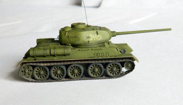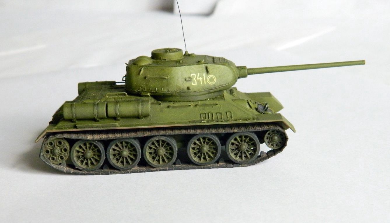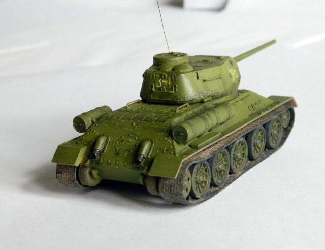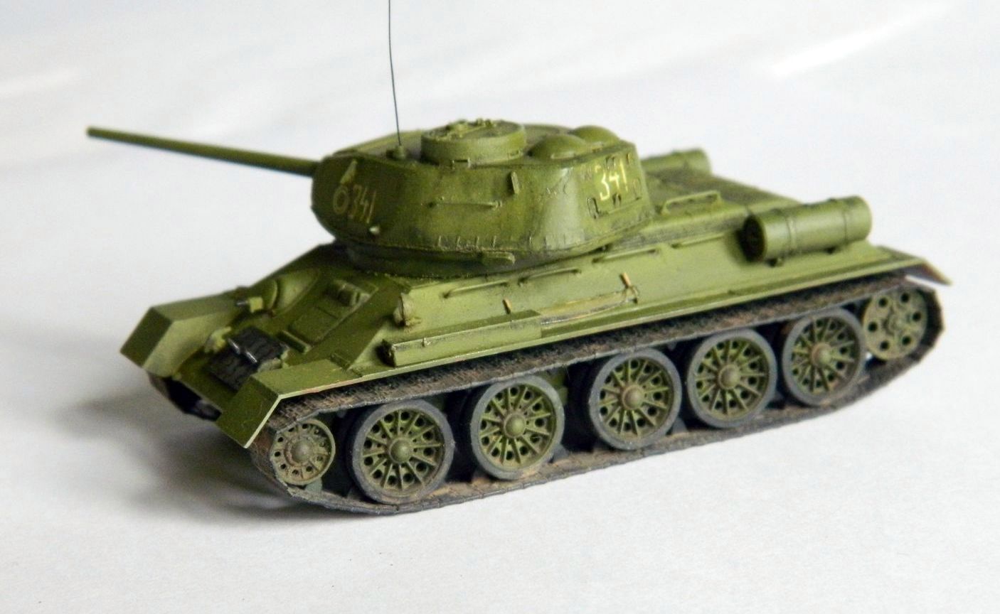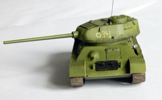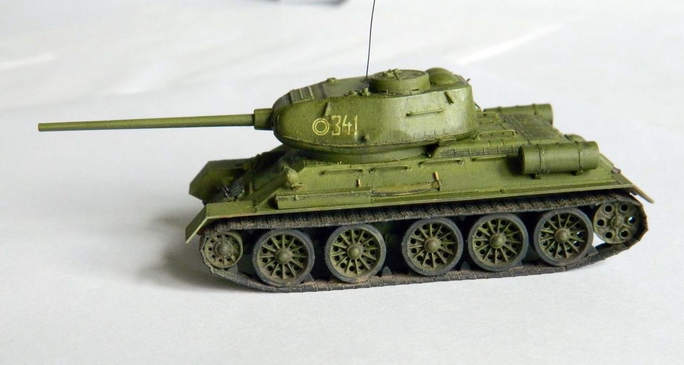 Вашему вниманию всем известная модель т34-85 от звезды,пришлось некоторые неточности исправить ,но не все конечно же. по башне добавлены рымы,крышки бойниц,смотровой прибор по правому борту, проволочные петли для скатки,поручни,антенка из кисти,литьевой шов,приливы от литья башни