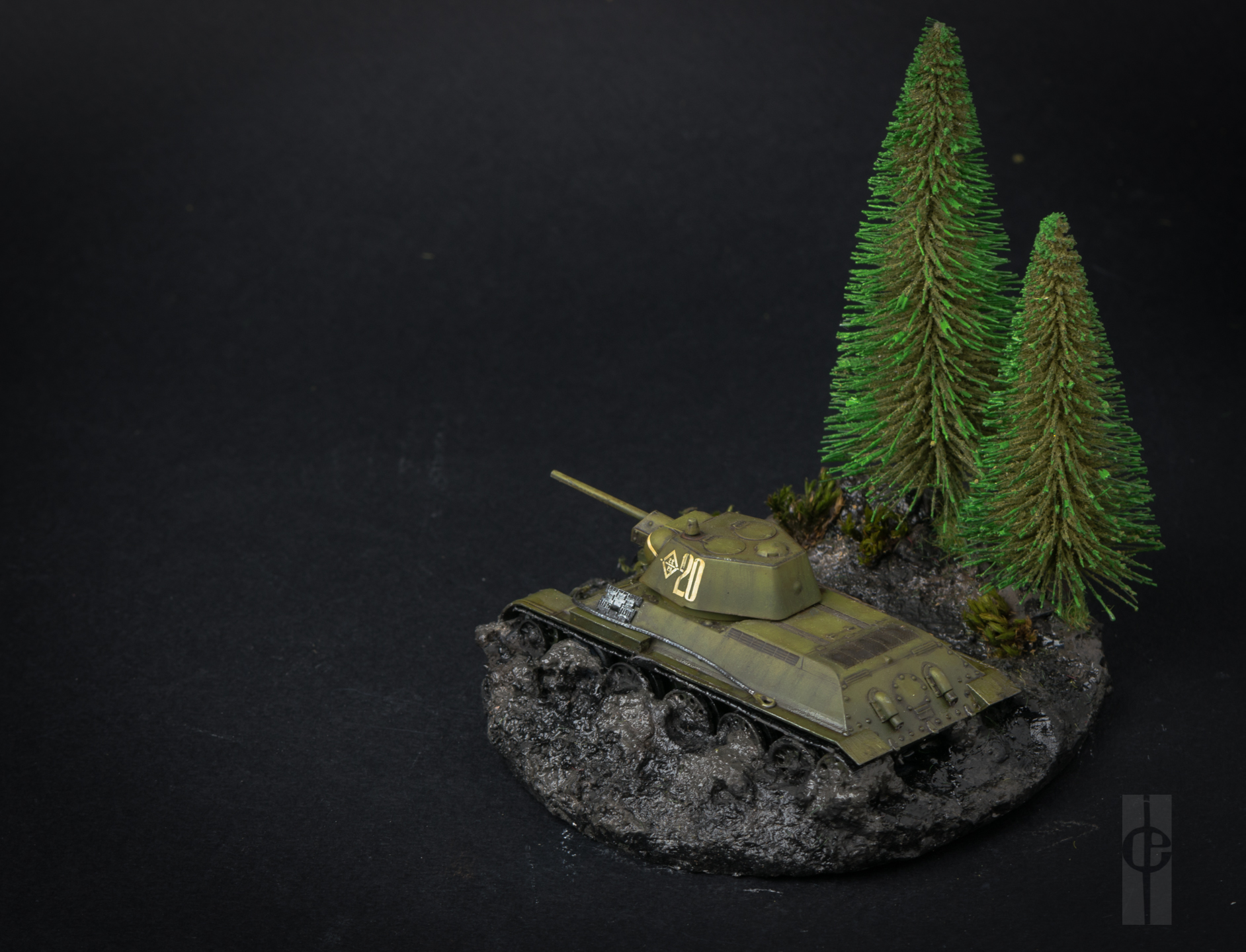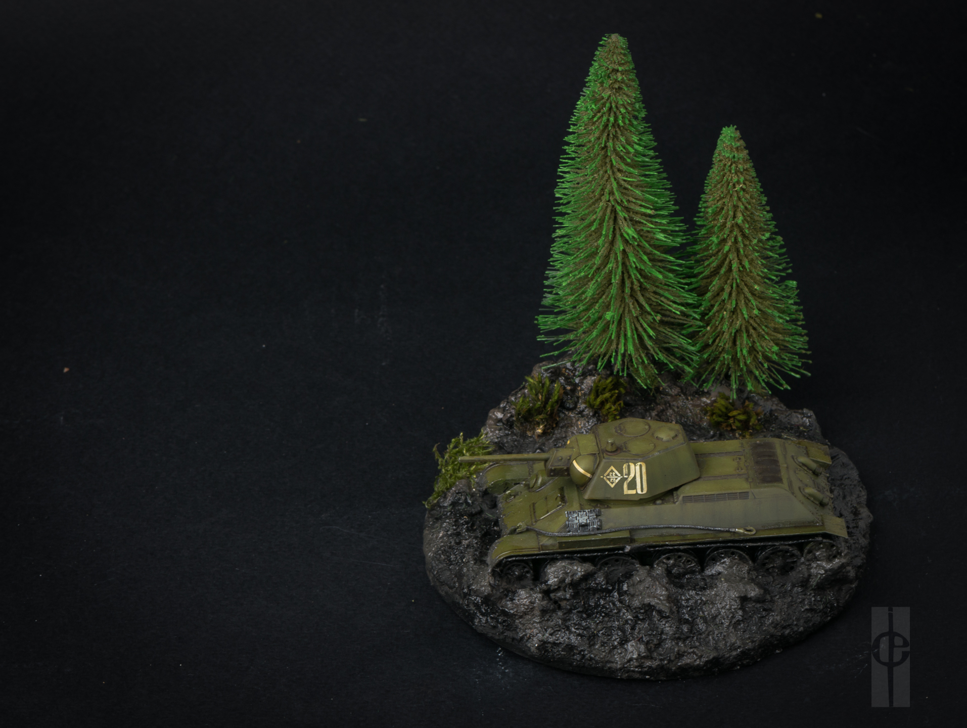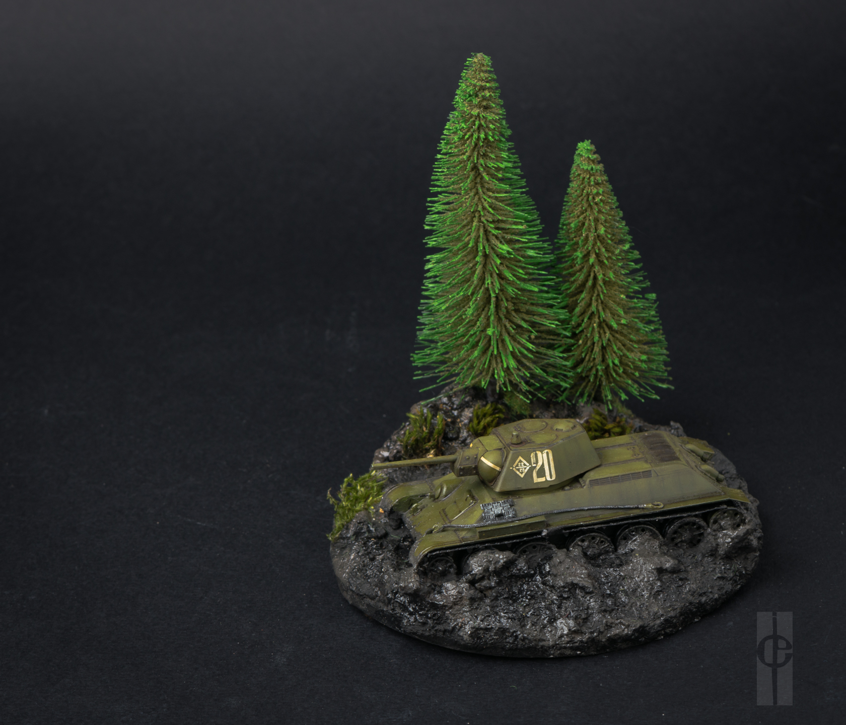 В дополнение к модели сделано основание из глины (супруга занимается керамикой) + гипс+ мелкий песок + текстурная паста от Wilder (HDF-TE-01, HDF-TE-03). Композиция дополнена елками от Noch (32625) и мхом с дачи.)