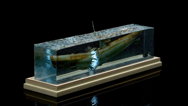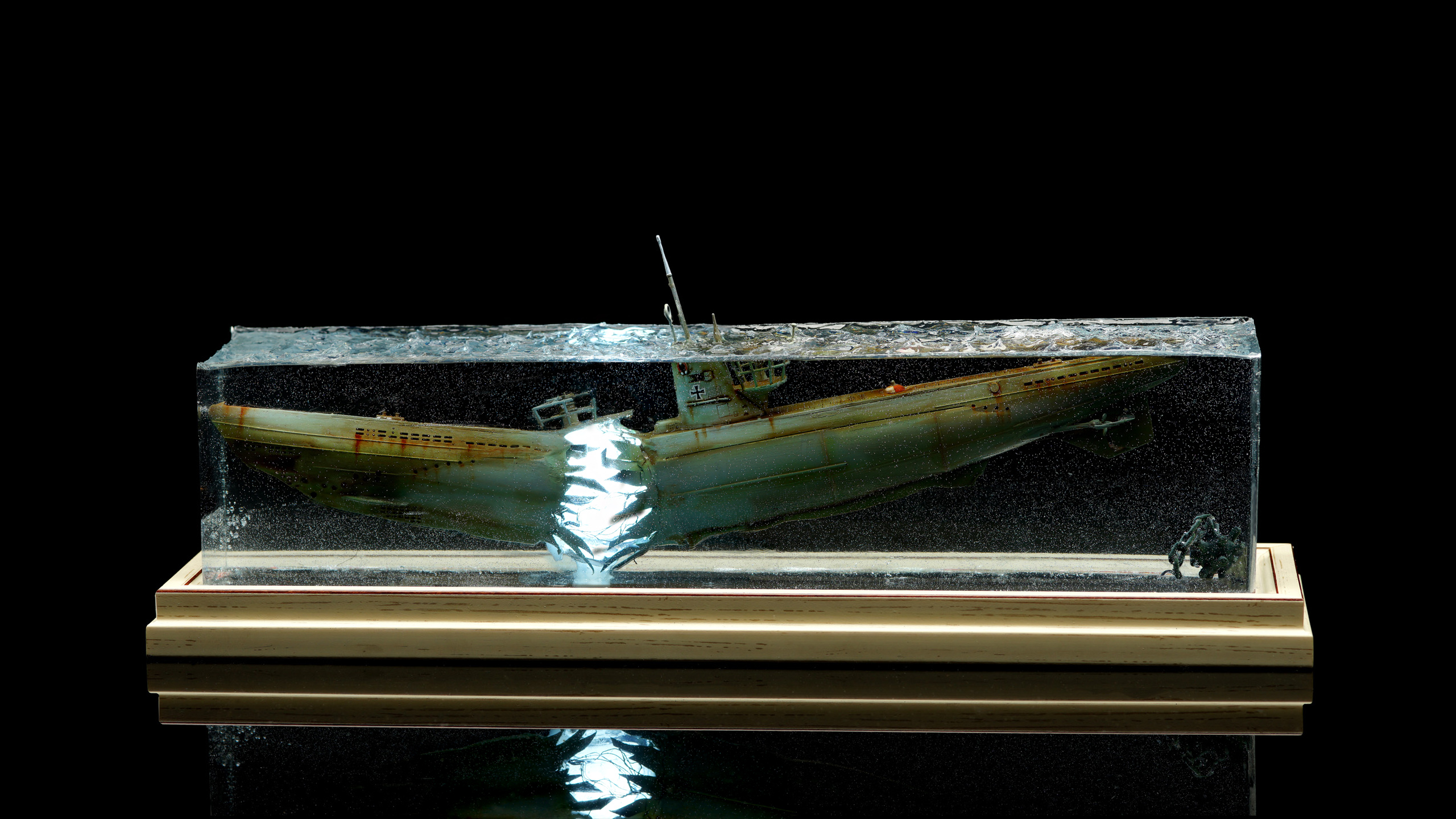 Исполнение шикарное. Но в воде гидроудар распространяется со скоростью большей, чем перемещаются и поворачиваются такие огромные части как половинки субмарины. И на этом этапе, что запечатлен в диораме, на поверхности воды уже должен быть результат взрыва в виде вздымающегося холма воды.