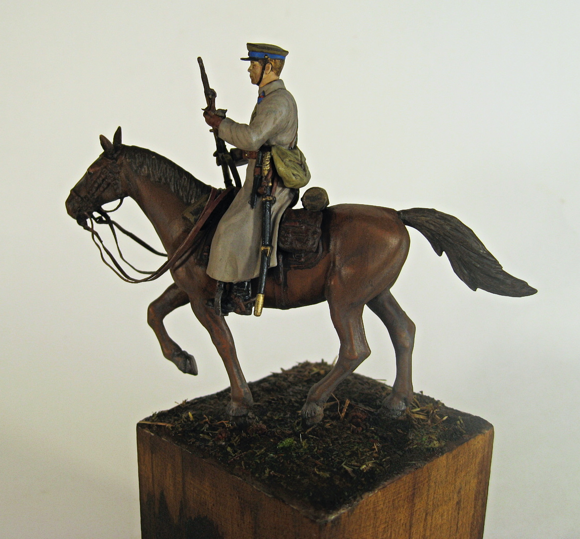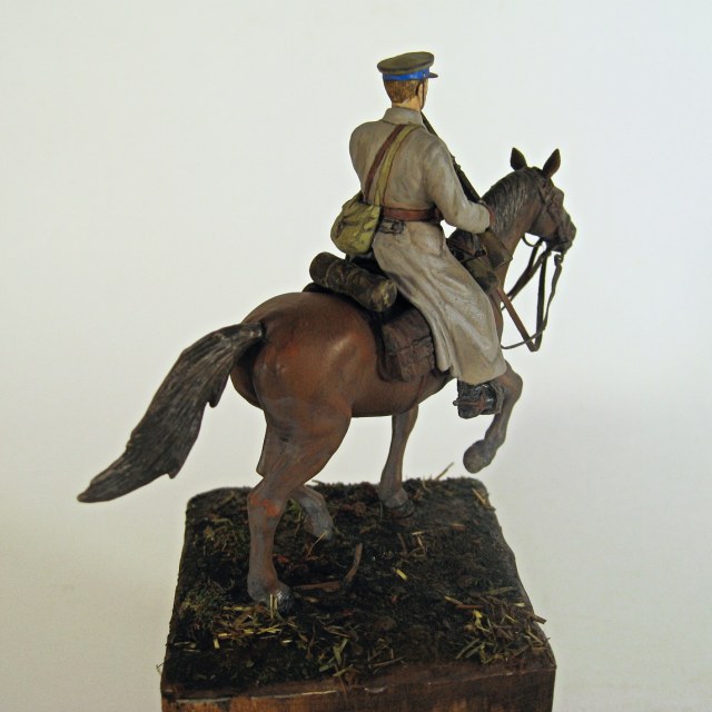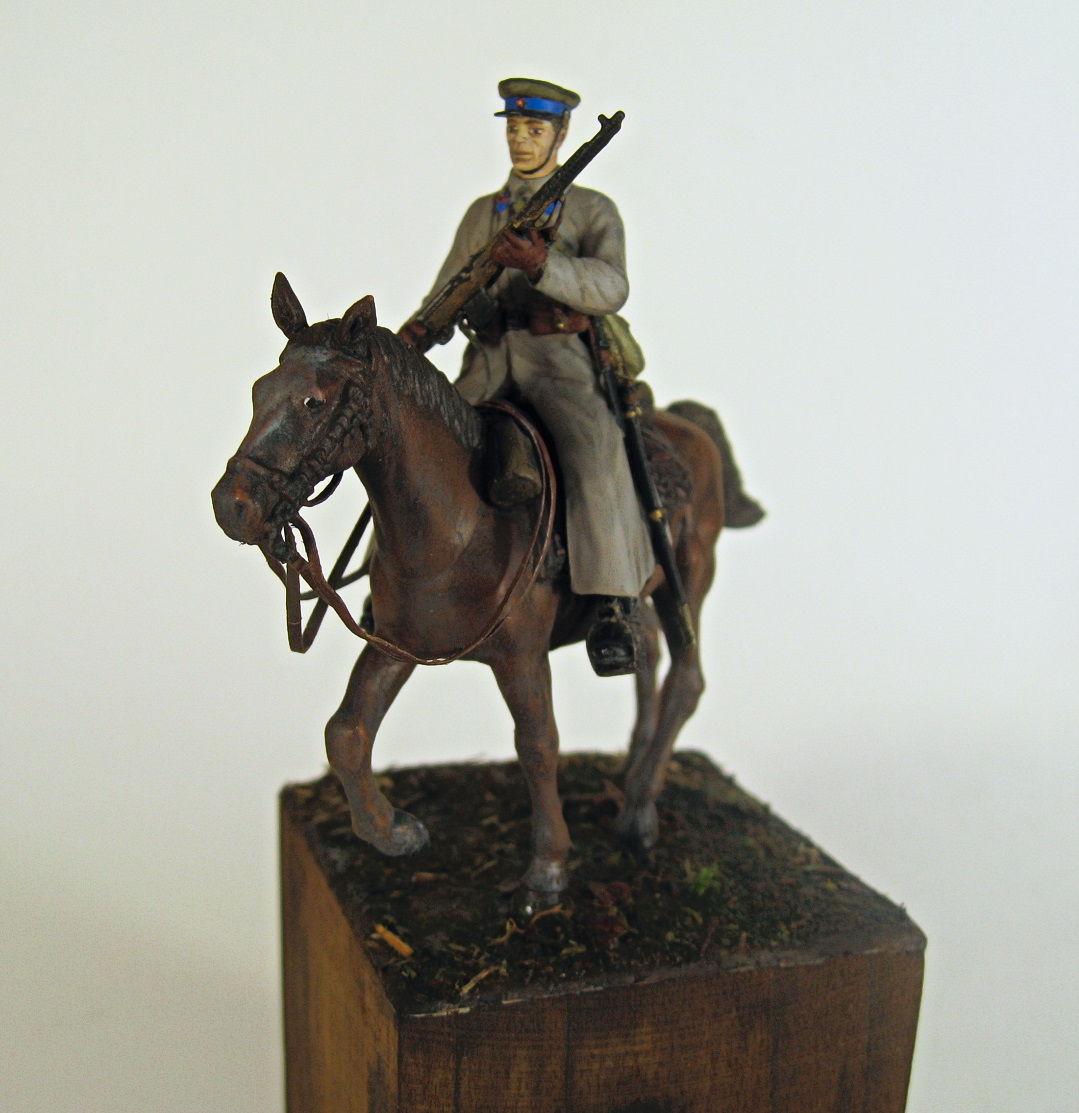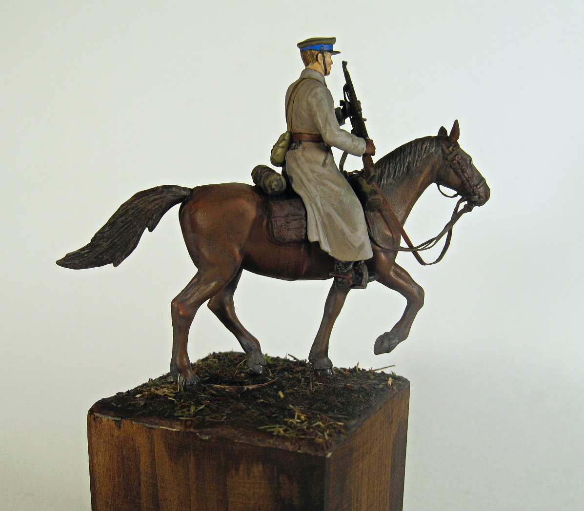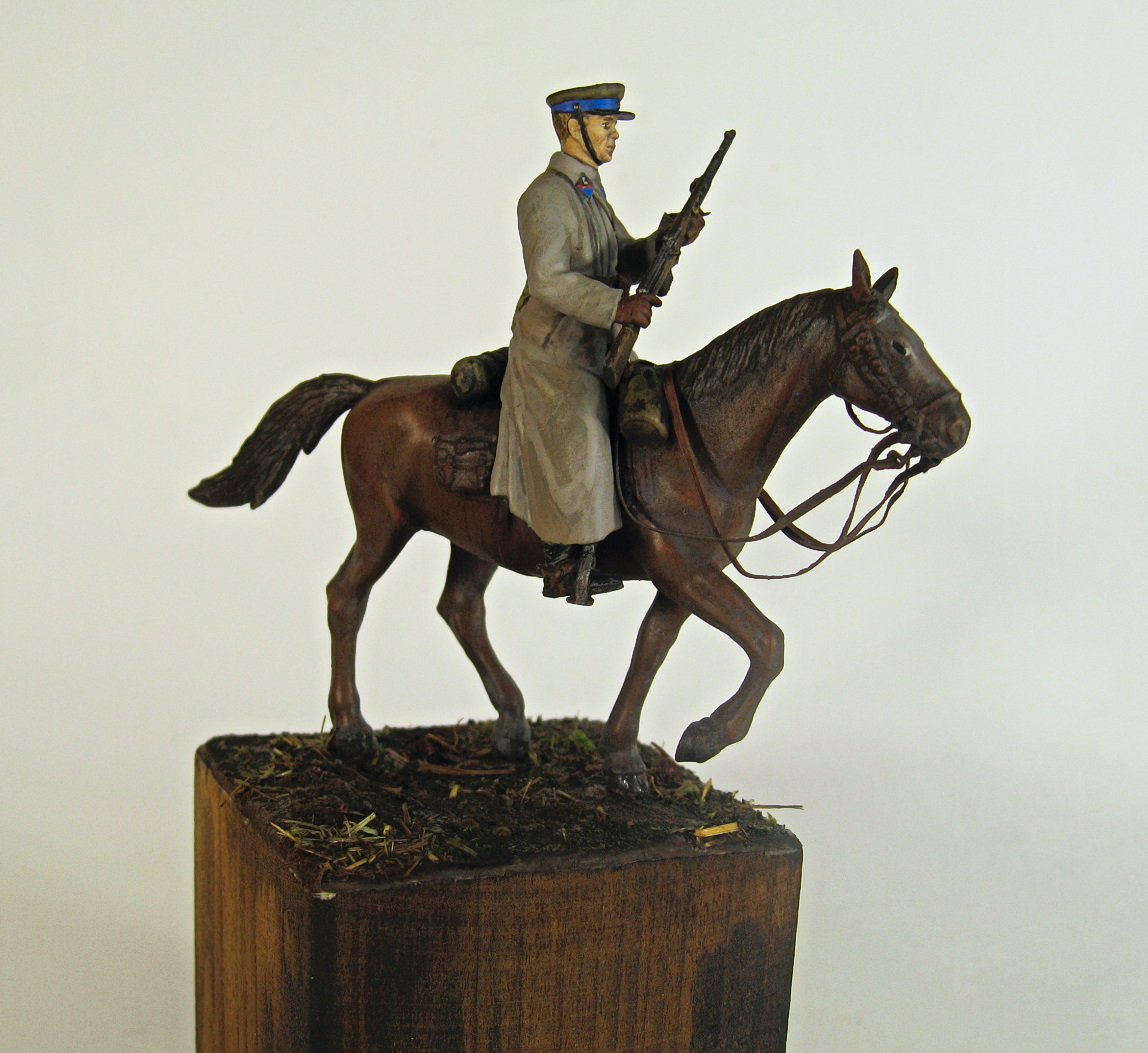 Здравствуйте. Вот такой сержант кавалерии, на 40 год. Голову заменил на Armor35, родная - слезы. Впервые попробовал лицо покрасить водным акрилом - непривычно, адски. Опять проблемы с фотографированием, либо лошадь, либо всадник. Попытался представить нечто среднее. Акрил, масло.