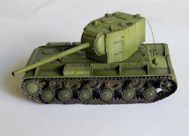 Вашему вниманию танк КВ с орудием Зис6 107мм, экспериментальный танк,тем не менее в боях был потерян.Обычная модель КВ от трампетер,заменил сетки на мто,стволы пулеметов,проволка на поручни и фара "Эльф",окраска акрилом АК, смывки АК.