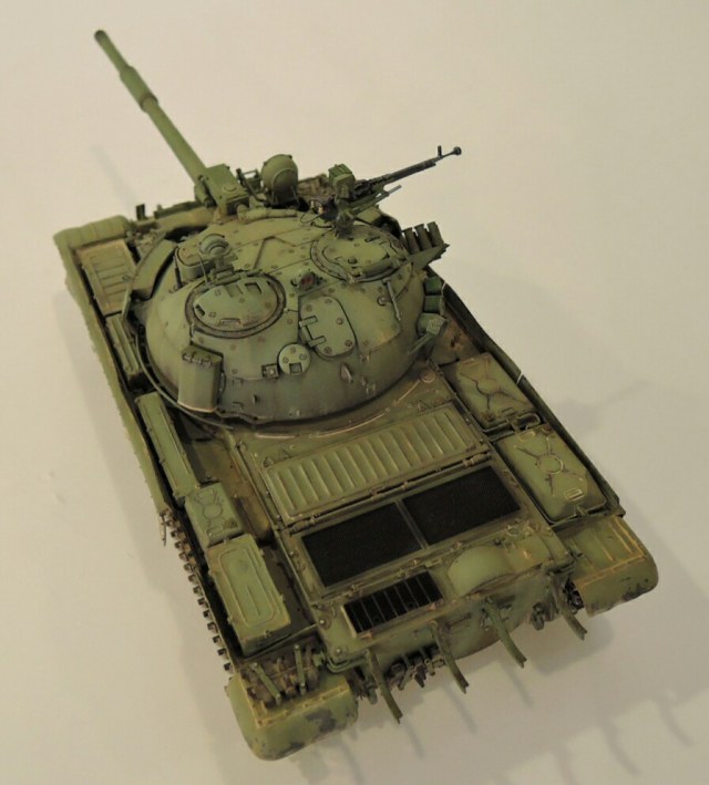 Модель собрана без перепиливания косяков ,основное внимание сосредоточил на мелочах. Ящики на надгусеничных полках были заменены на аналогичные от модели Т-55 фирмы тамия.