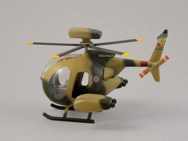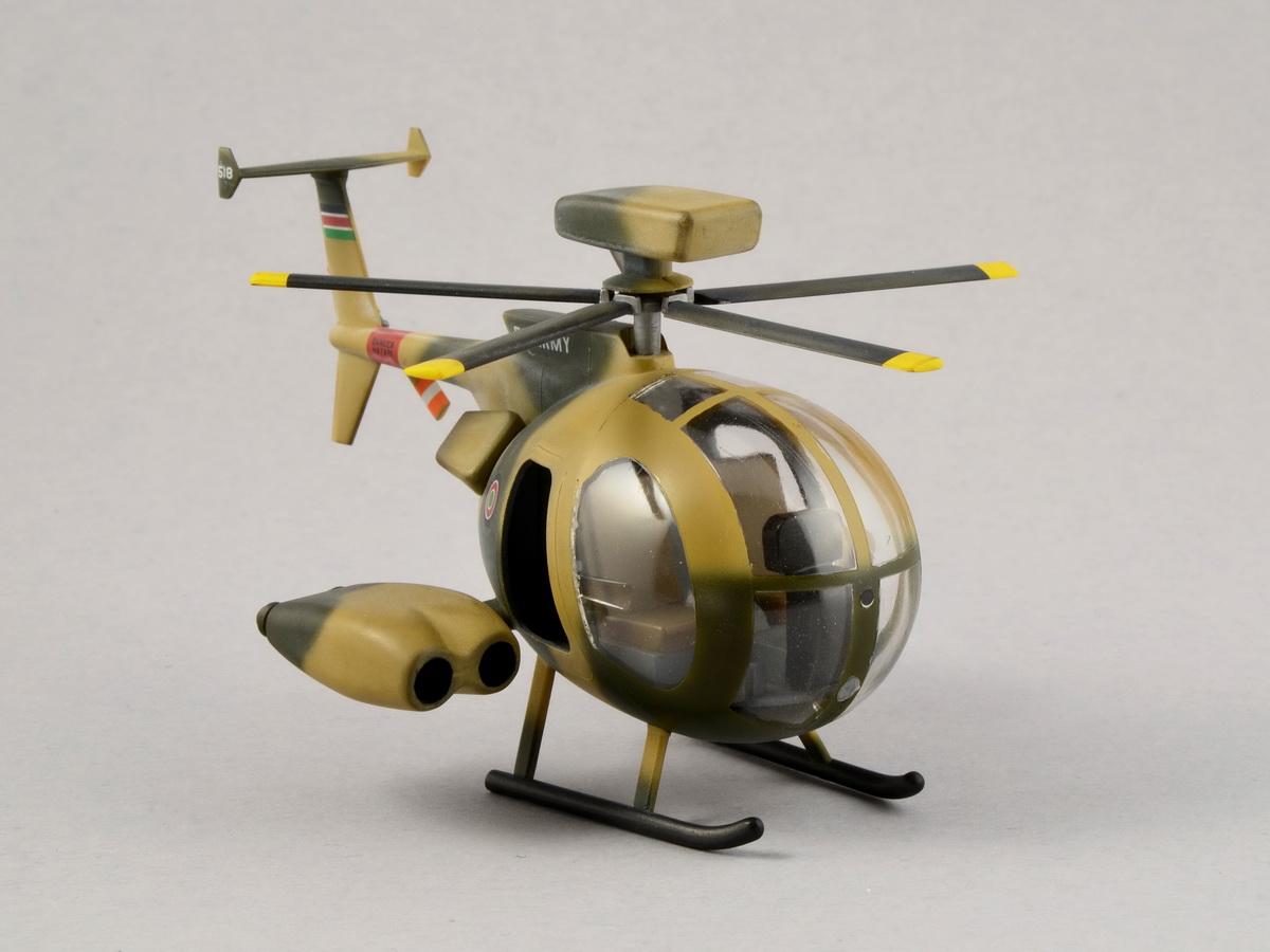 В поцессе все-таки не удержался и полез поглядеть на всякие Хьюзы. Пришел к выводу, что Хася в этом шарже вроде как скрестила 500 и 500MDDefender. Камо, если затемнить коричневый будет похож на аргентинский. Могу и ошибаться, т.к. в вертолях полный ноль.