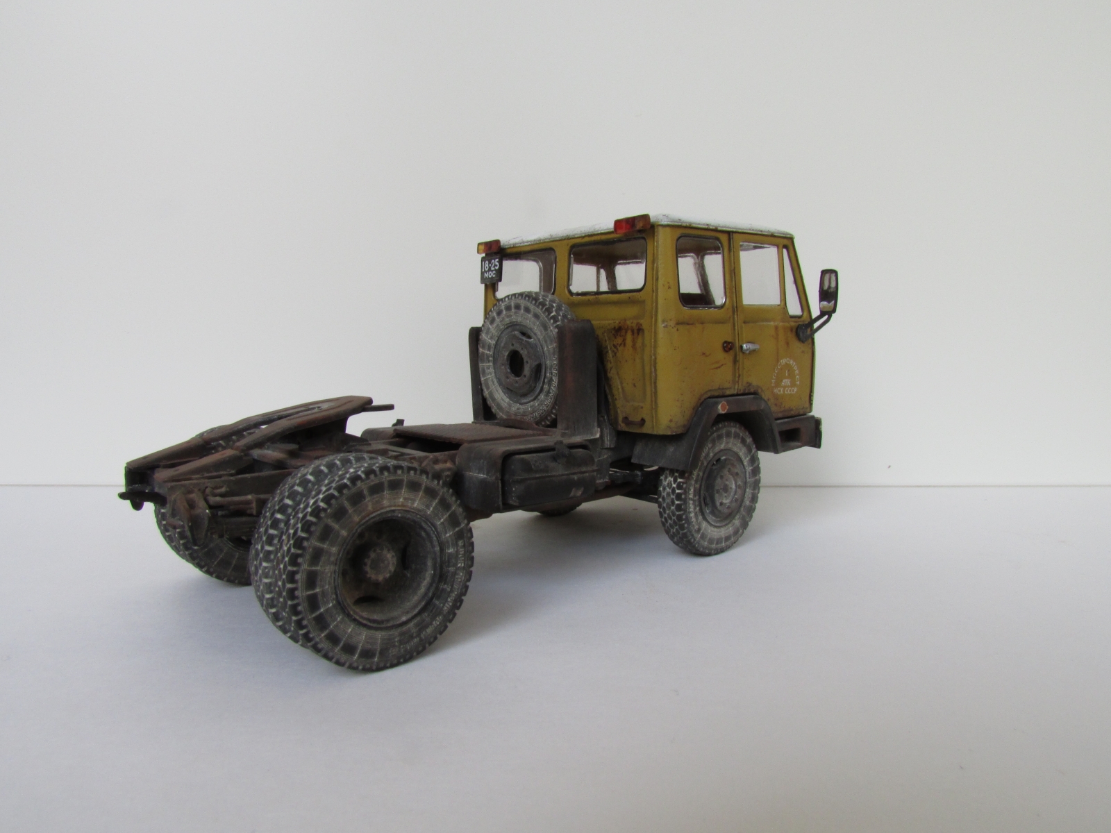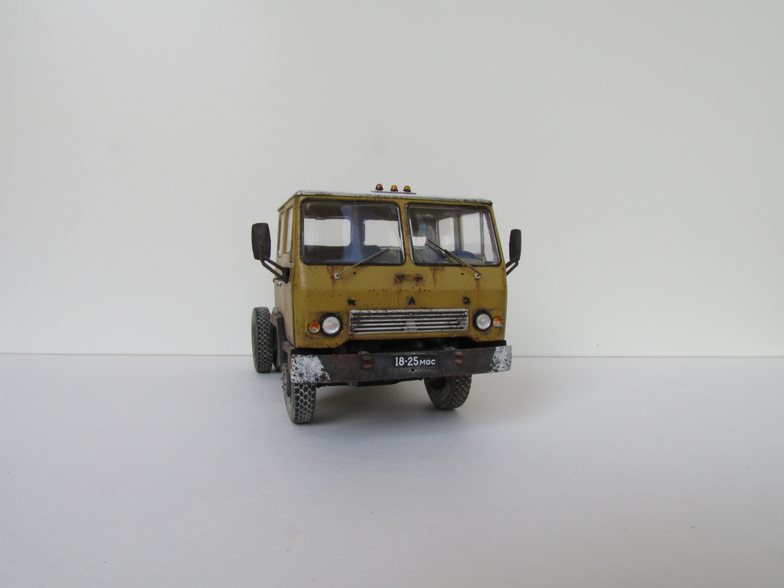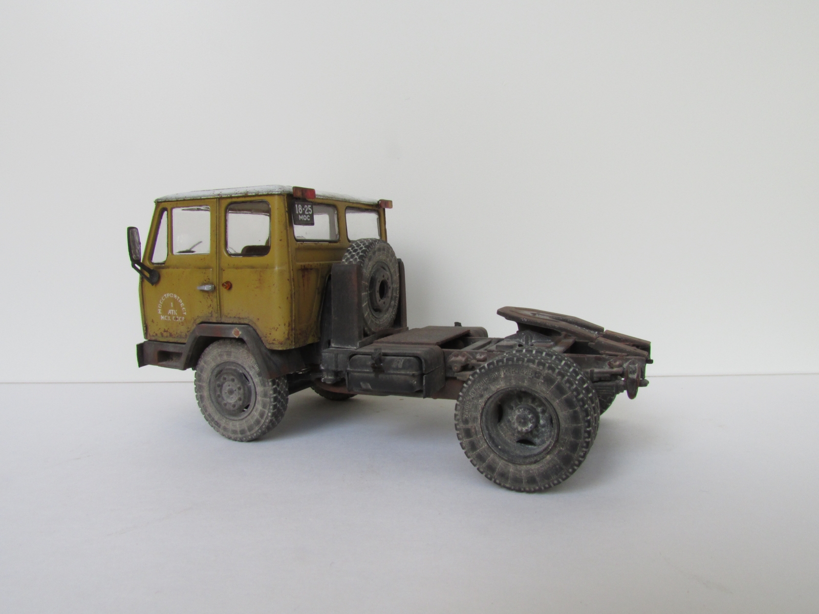 Всем привет ! Вашему вниманию представляю недавнюю новинку от АВД , Собрана практически из коробки , за исключением следующего : сточил поручень на капоте кабины , изготовил из скрепки от степлера , также были сточены огни автопоезда и установлены из остатков других наборов , доработана стандартная оптика , путем вклеивания в нее скотча из алюминия , окраска стандартная база Мр. хобби , пигменты миг , эффекты АК , смывка тамия .