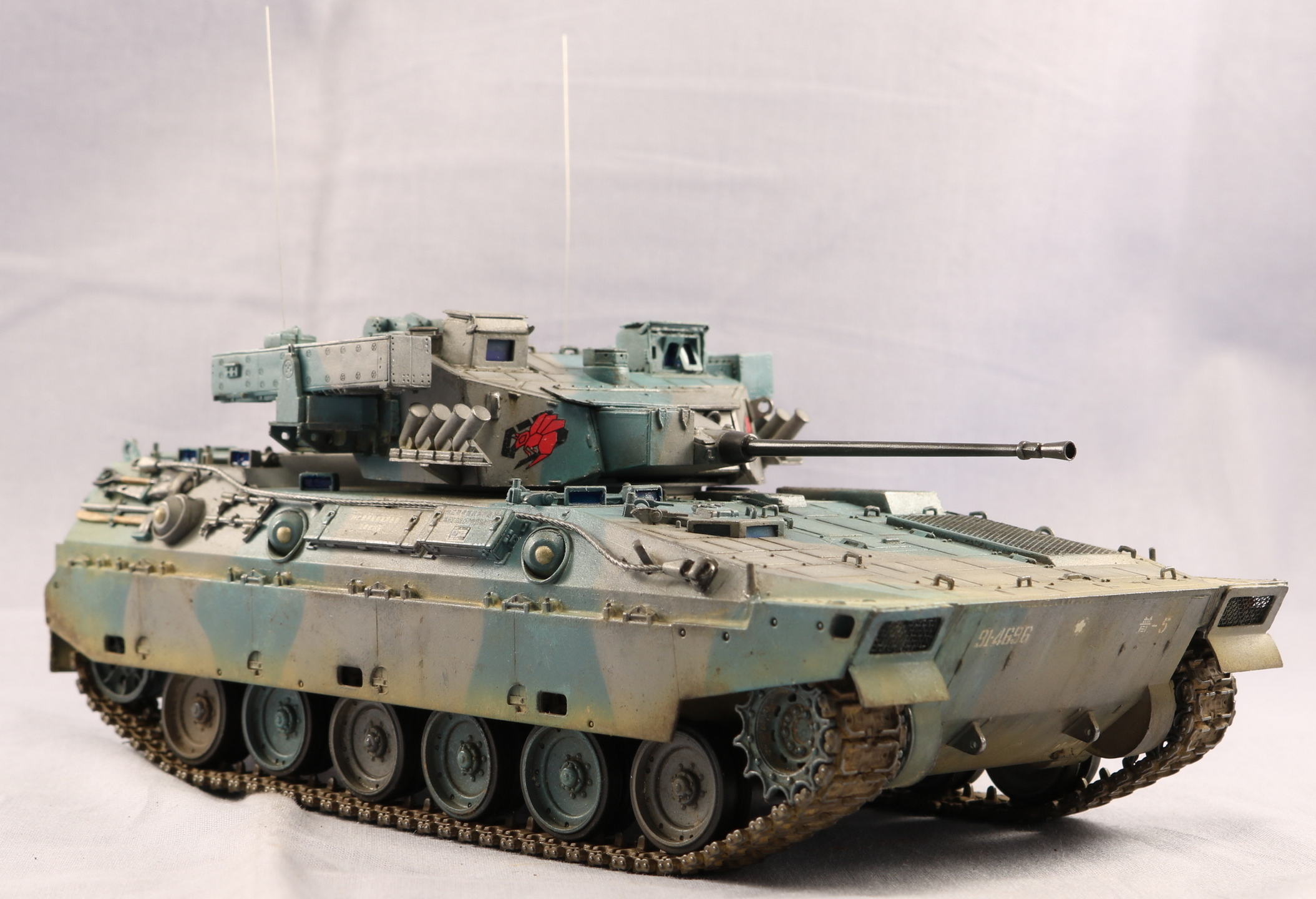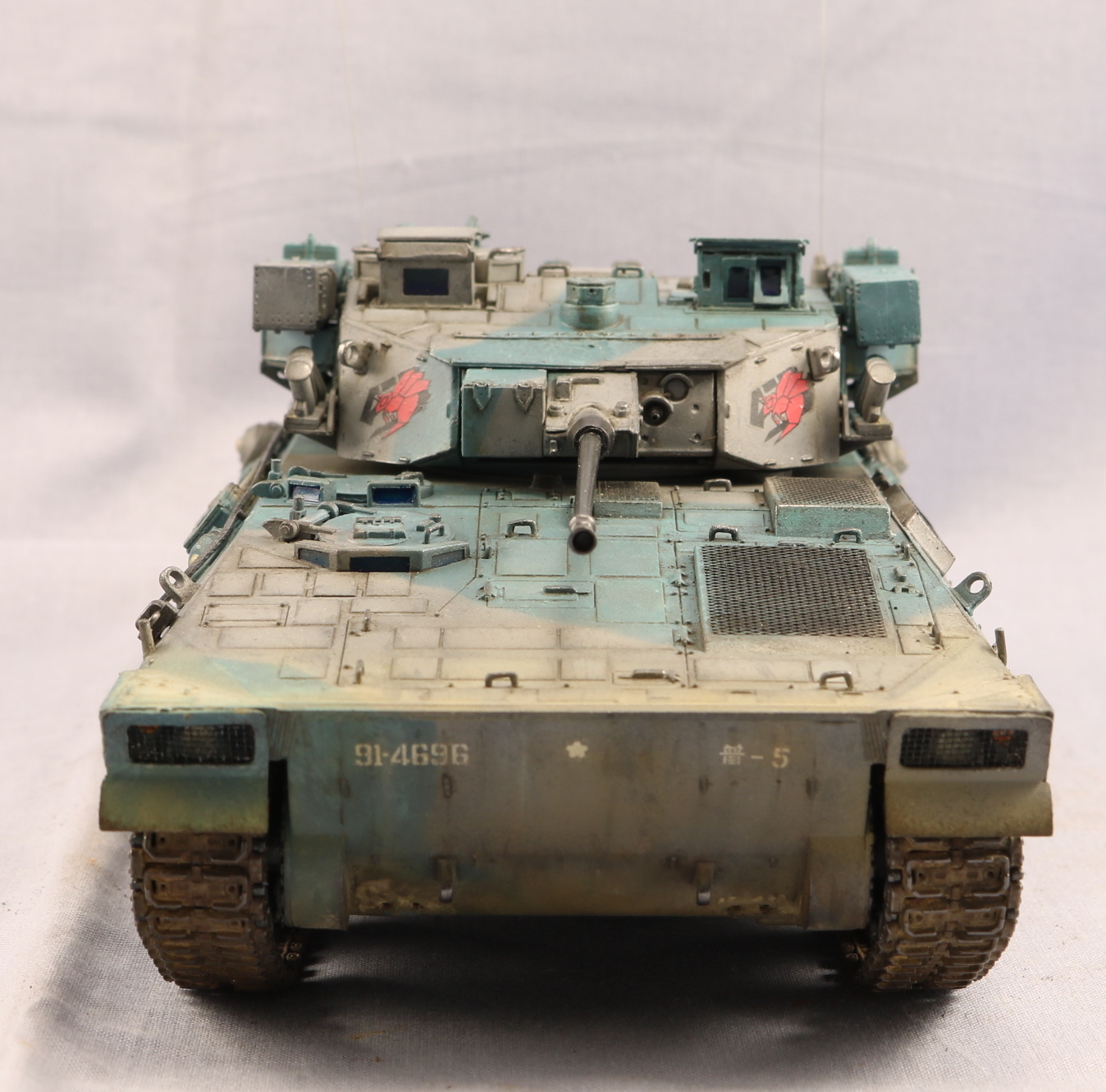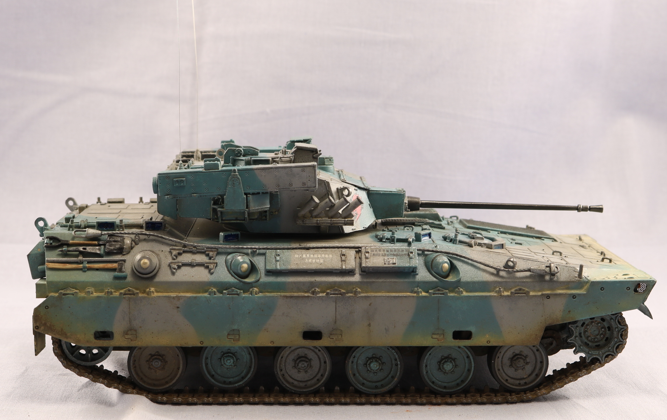 Доброго времени уважаемые коллеги. Модель от TrumpetrJGSDF Type 89 видел давно, но боксарт меня не впечатлил. Но увидел работу Павла Черепанова и аппарат меня заинтересовал своими стремительными формами. Этакое ломборгиге на гусеницах. В интернете нашел такой окрас, он мне показался лучше предлагаемого. Красил красками Gunze Sangyo, цвета мешал на глаз по фотографии. Пигменты AK. Никак не могу найти золотую середину в ушатоности. Опять получился сильно поюзаным. На этом вроде бы все. Спасибо за внимание. Жду ваших советов и критику. С уважением.