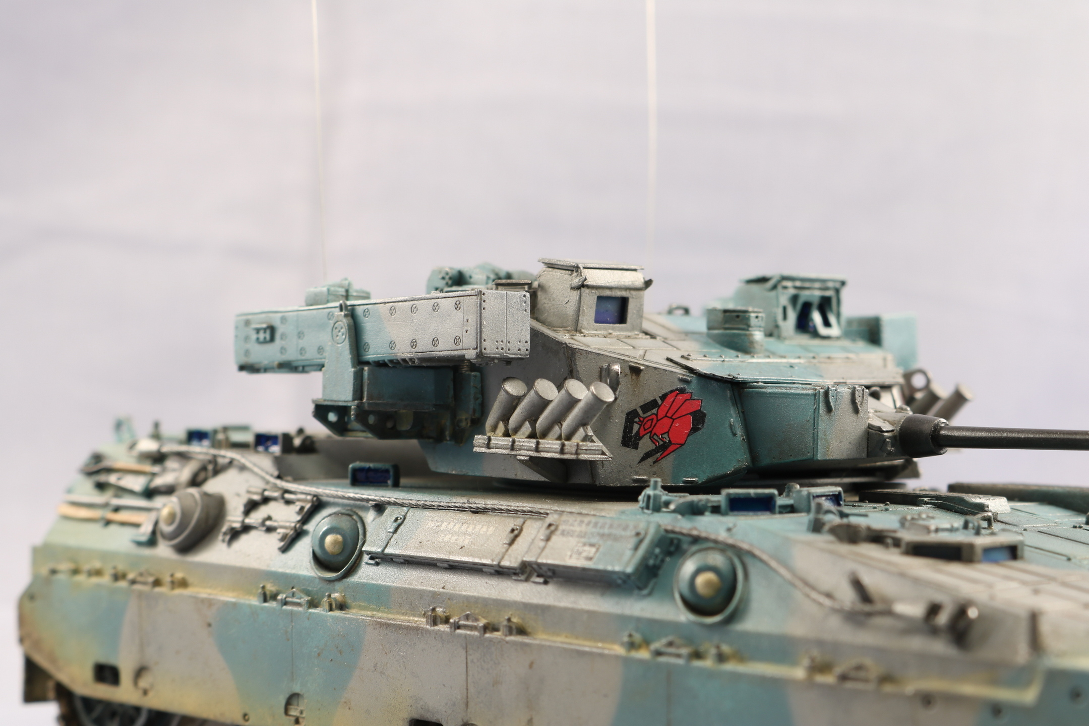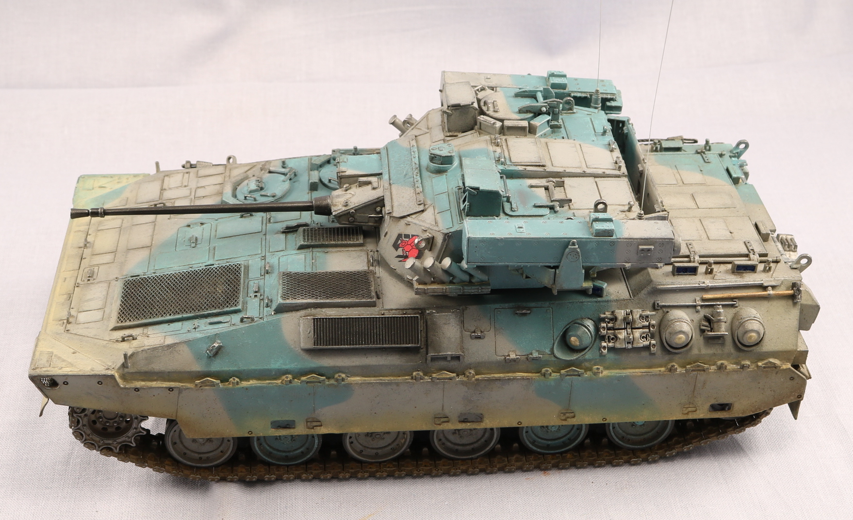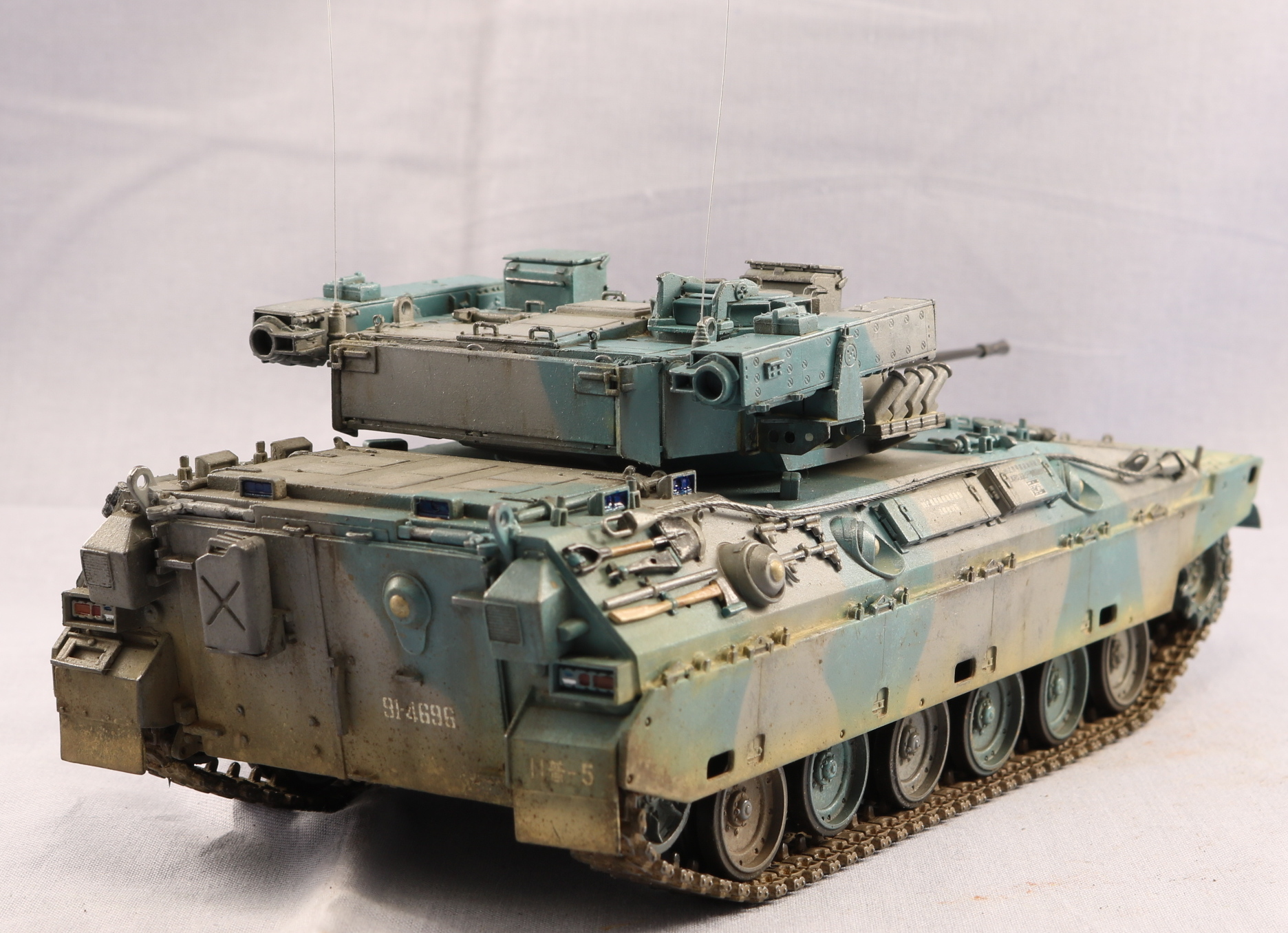 Доброго времени уважаемые коллеги. Модель от TrumpetrJGSDF Type 89 видел давно, но боксарт меня не впечатлил. Но увидел работу Павла Черепанова и аппарат меня заинтересовал своими стремительными формами. Этакое ломборгиге на гусеницах. В интернете нашел такой окрас, он мне показался лучше предлагаемого. Красил красками Gunze Sangyo, цвета мешал на глаз по фотографии. Пигменты AK. Никак не могу найти золотую середину в ушатоности. Опять получился сильно поюзаным. На этом вроде бы все. Спасибо за внимание. Жду ваших советов и критику. С уважением.