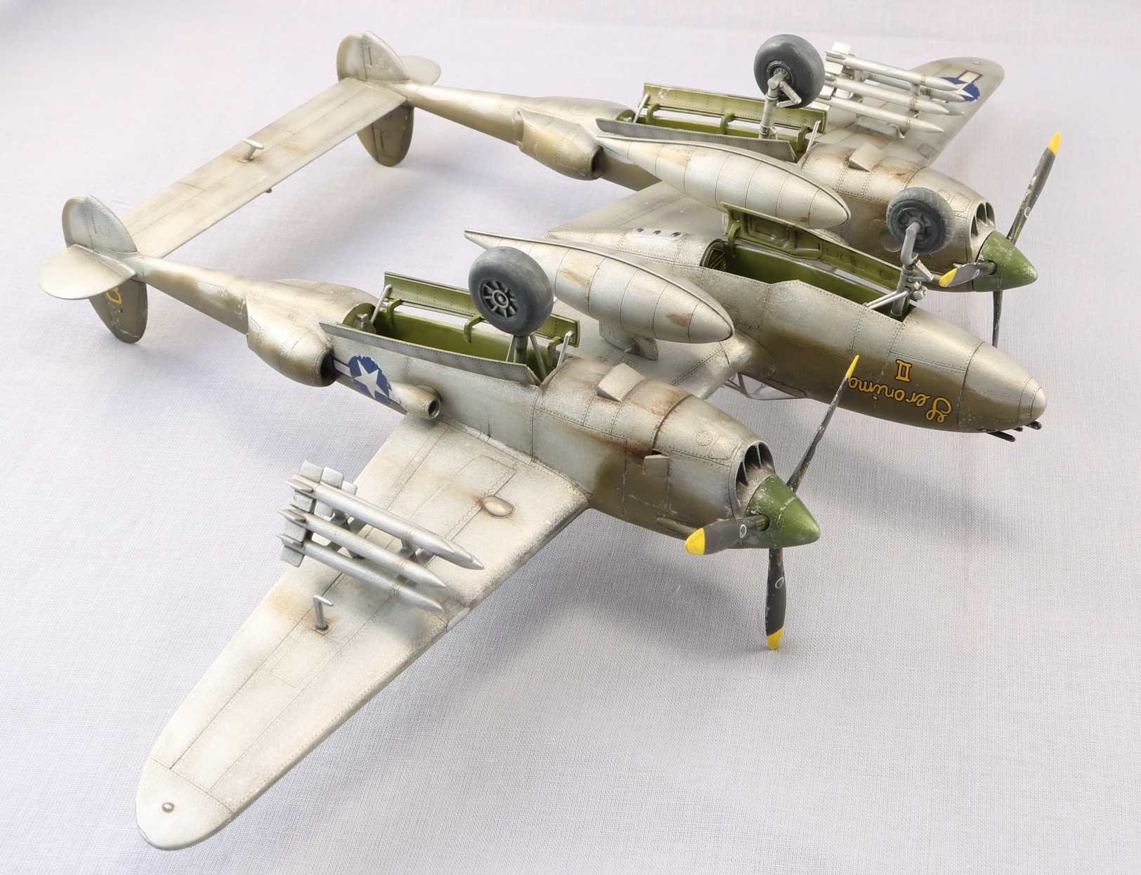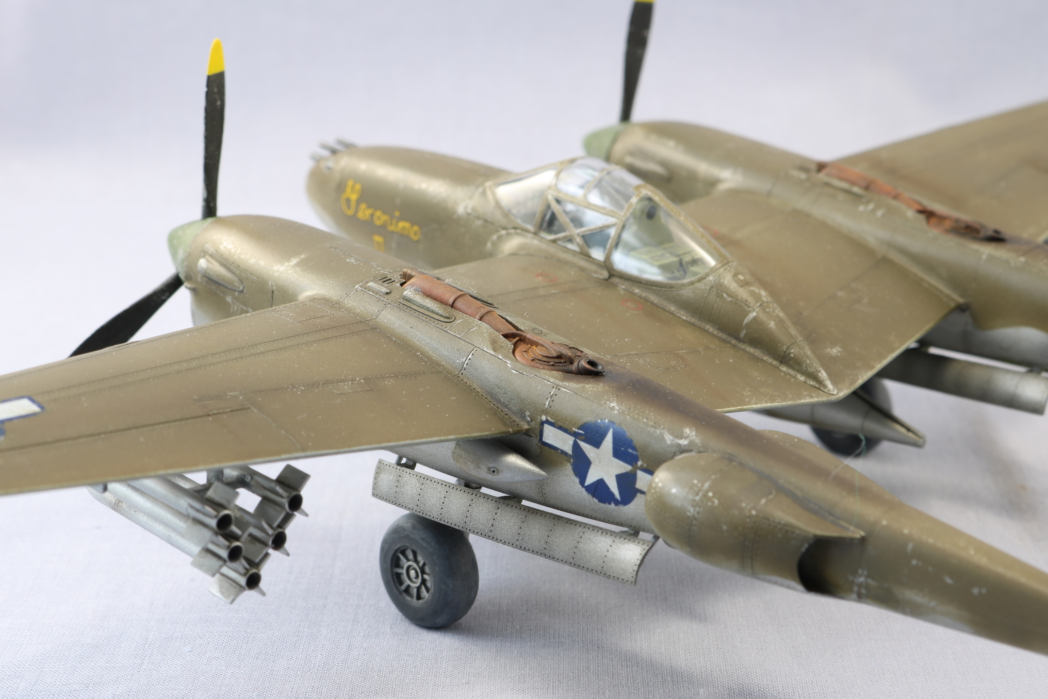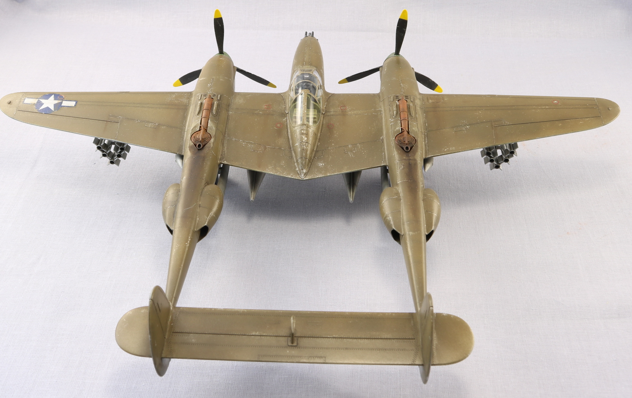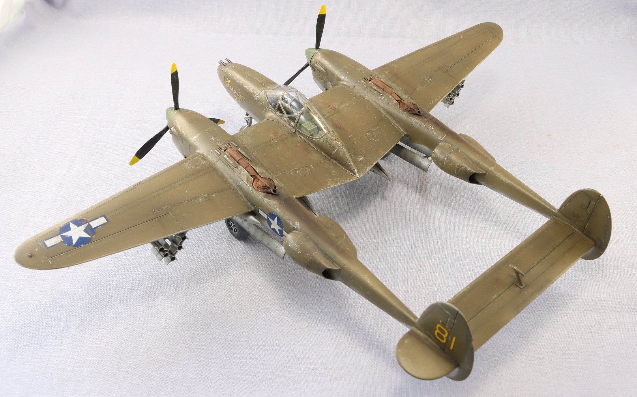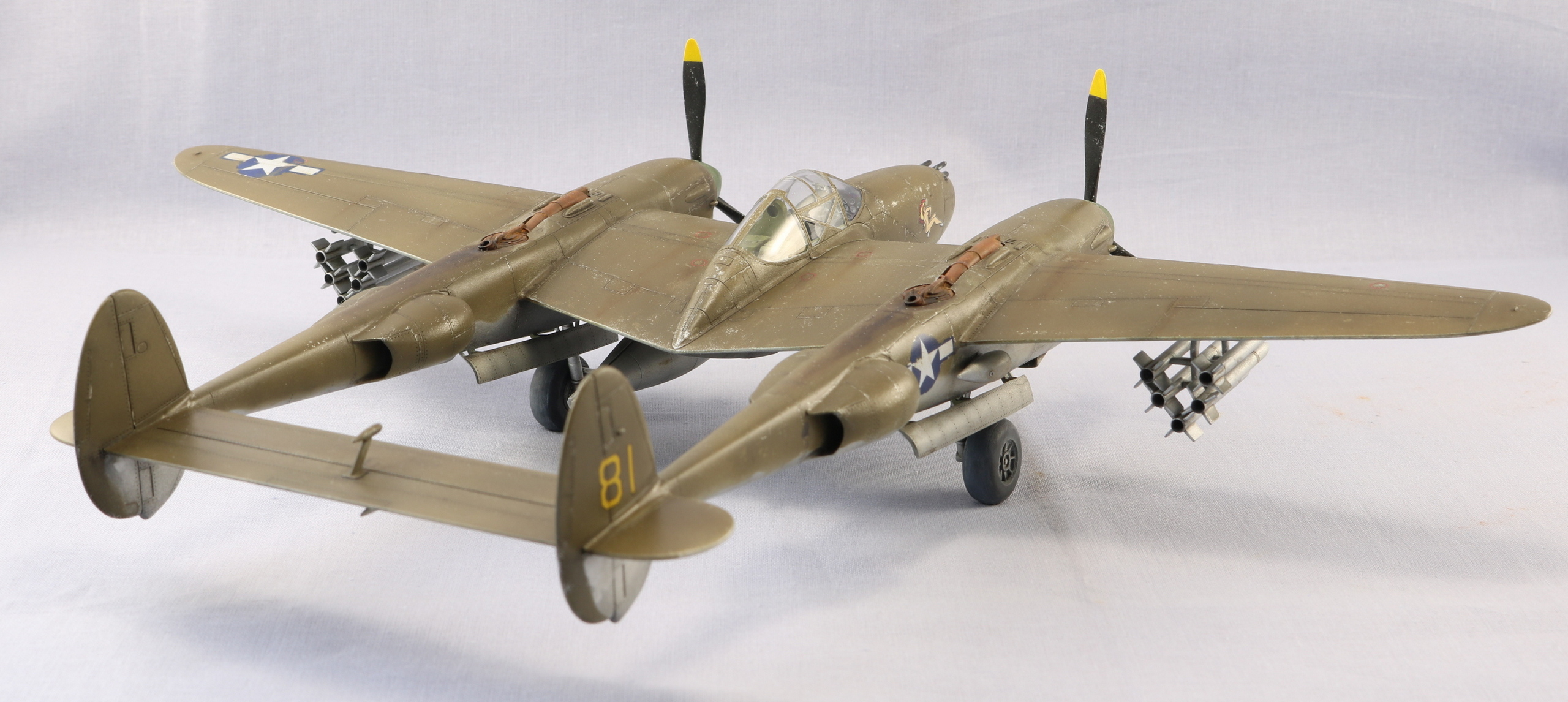Доброго времени уважаемые коллеги. Снова захотелось полетать. P-38 один из моих любимых самолетов. Но так как это мой второй самолет кит я выбрал от HobbyBoss. Исключительно по ценовому выбору. Очень удивился когда открыл коробку тому что самолет практически весь состоит из двух половин. Поэтому сборка очень быстрая. Красил красками Gunze Sangyo, тонировал масляными красками. Тут уже ушатывал сознательно. Топлевные баки не клеел, т.к. есть еще авиабомбы. Но с баками смотрится солидней. На этом вроде бы все. Спасибо за внимание. Жду ваших советов и критику. С уважением.