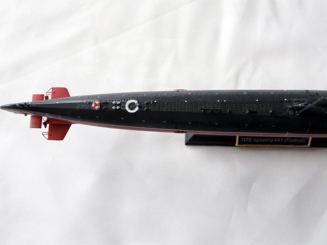 Уважаемые коллеги, представляю Вам модель советской большой дизельной подводной лодки проекта 641 (по классификации НАТО – Foxtrot), выполненная в масштабе 1/350 из набора МикроМир. Информация по прототипу. Для большинства подводные лодки 641 проекта ассоциируются с Карибским кризисом и операцией "Кама". Расскажу Вам о следующей большой странице, где проявили себя лодки 641 проекта - "Шестидневная" арабо-израильская война в Средиземном море (5 июня 1967 года). В это время в Средиземном море на боевой службе находилось 8 подводных лодок 641 проекта. После этих событий, в 1968 г. американское правительство разрешило кораблям 6-го флота, находившимся в Средиземном море, уничтожать советские подводные лодки, обнаруженные и не всплывшие в радиусе 100 миль от американских кораблей. Такое решение противоречило Женевской конвенции 1958 г. о свободе мореплавания и другим международным соглашениям. После этого 641 проект надолго прописался в Средиземном море, выполняя, в том числе и противолодочные задачи против американских ПЛАРБ.