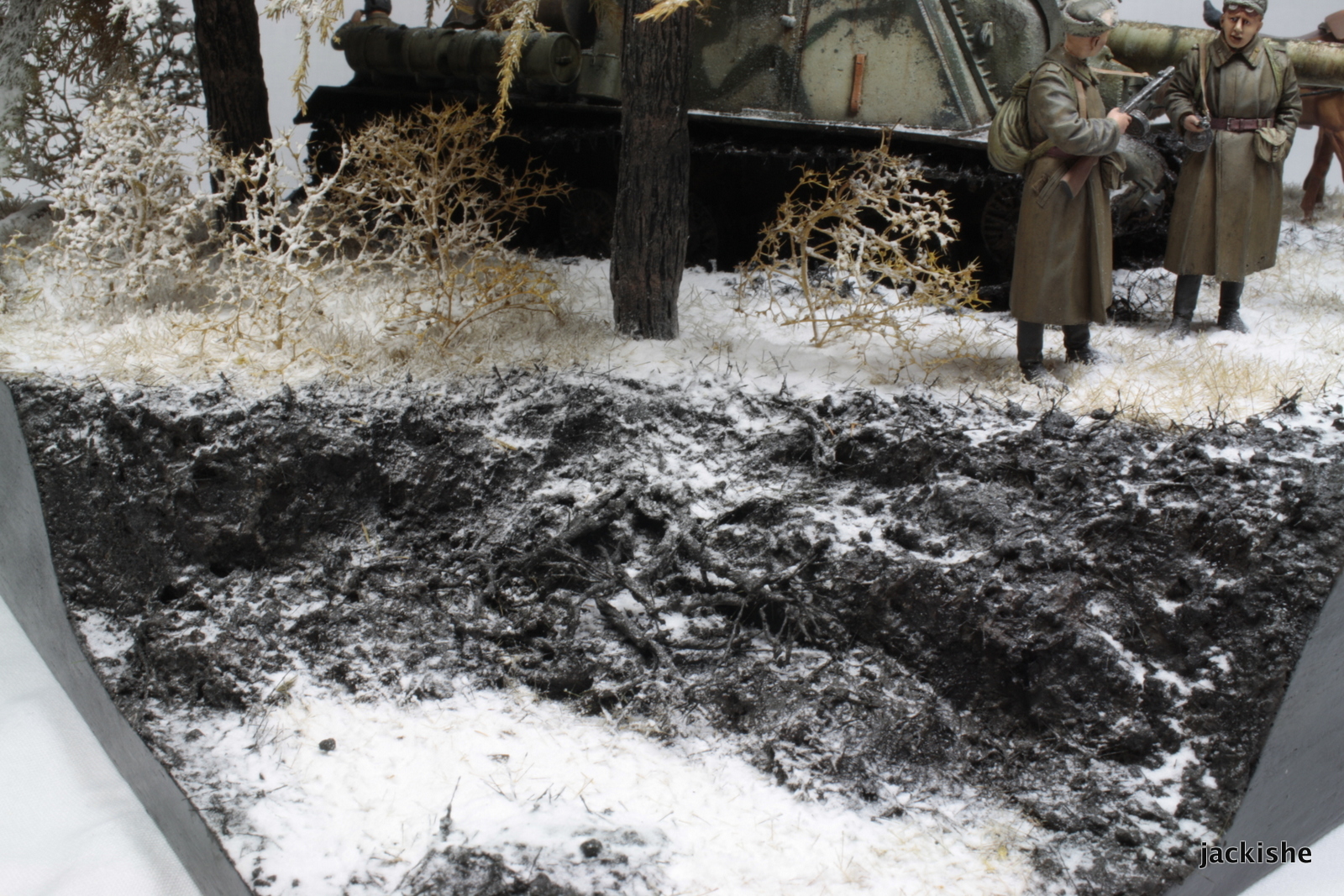 Основание диорамы изготовлено из пенокартона..земля имитирована различными художественными пастами.