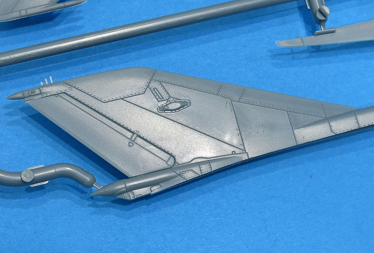 1. Фюзеляж + крылья + стабилизаторы. На киле подозрительные разводы, но вроде не утяжина - на ощупь гладко. В остальном отличная детализация и никаких дефектов.