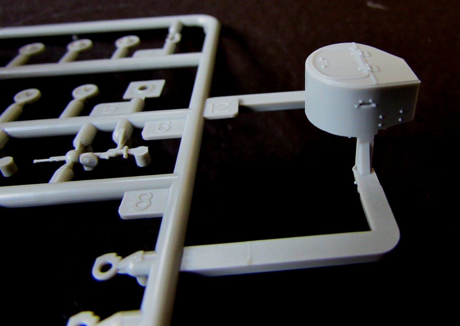4. Ствол - терпимо, но все же не ахти - есть облой, а самое главное, ствол уж больно огромен. Конечно, в данном случае я предпочел бы поставить ствол от Dymok72 - положил рядом для сравнения - но вот из-за конструкции бронемаски и самого ствола сделать это будет ОЧЕНЬ проблематично.