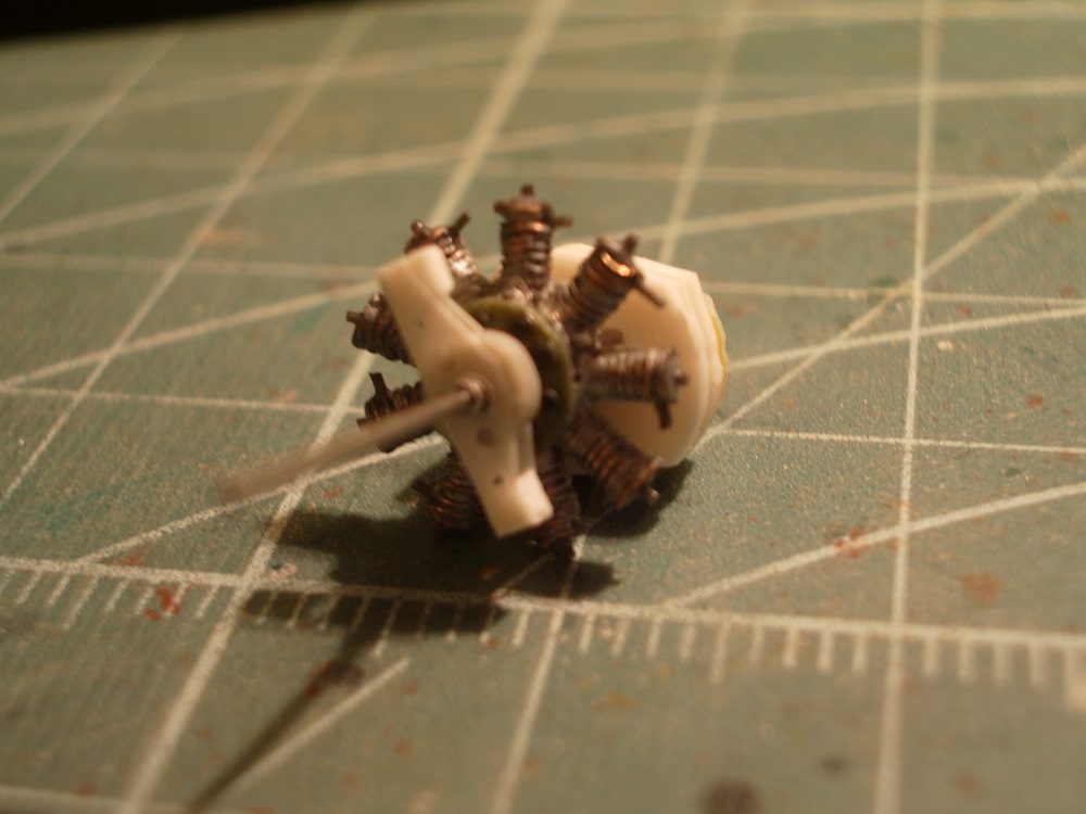 Изюминкой самолёта был биротативный мотор. На модели SiemensSchuckert D IV имитацию биротации уже делам Валентин Мучичко и коллега с «Карпоки» Дмитрий Быков. Вот и я решил попробовать свои силы в «микромоделировании», тем более каждый применял свой тип редуктора. Я использовал шестерни от китайских «кварцев», скопившихся в некотором количестве. Сначало всё работало, но ,то ли лак заклинил, то ли ещё какая причина, в общем «биротации» не получилось.:(