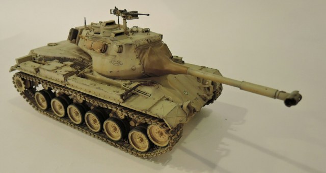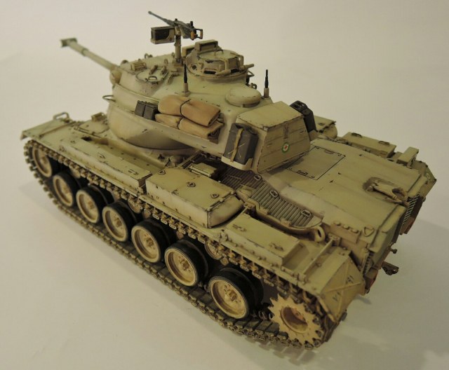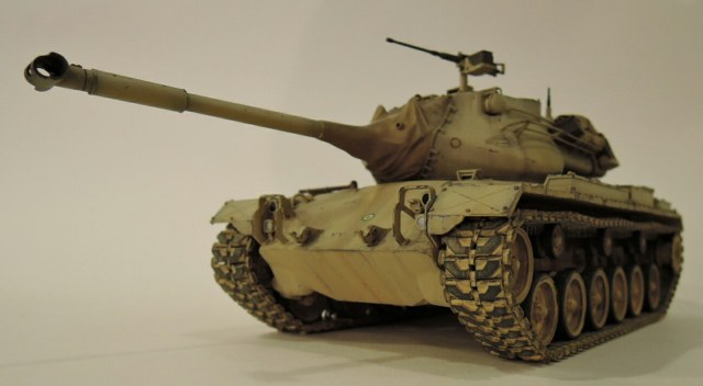 Модель таком позволяет воспроизвести вариант с трансмиссией и двагателем от М48А3. Модель хороша,собирается без проблем,шпаклевка понадобилась лишь при стыке надгусеничных полок с корпусом спереди. Деталировка хороша. От себя я добавил траки Friul и заменил крепеж канистр и сам канистры.Траки машин практически не имеют провиса,но как я ни старался он все же есть на модели. Не то что бы косяк,но вес траков сделал своё дело.